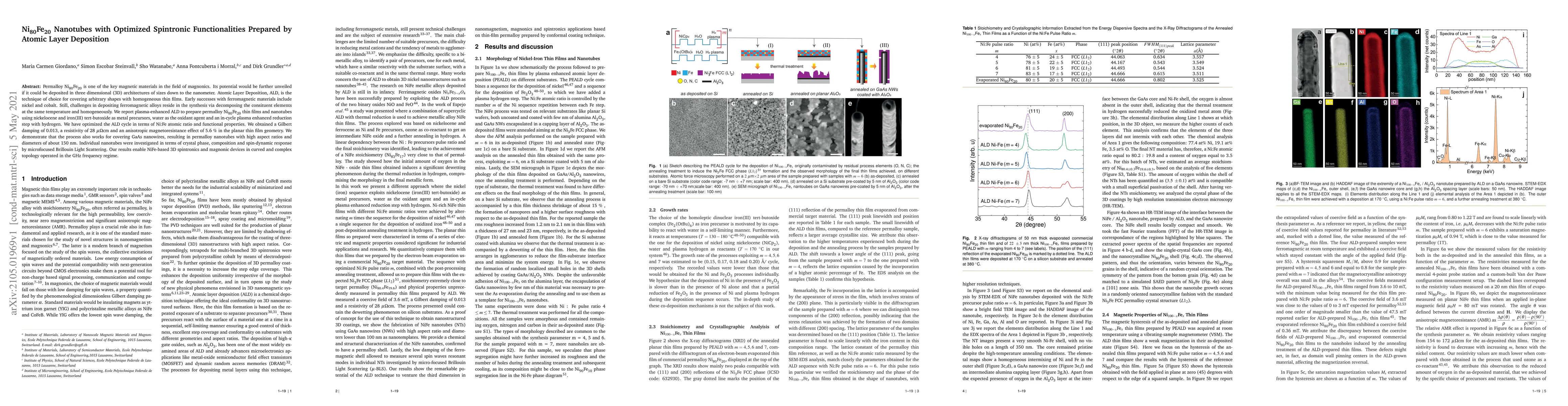 Permalloy Ni$_{80}$Fe$_{20}$ is one of the key magnetic materials in the field of magnonics. Its potential would be further unveiled if it could be deposited in three dimensional (3D) architectures of sizes down to the nanometer. Atomic Layer Deposition, ALD, is the technique of choice for covering arbitrary shapes with homogeneous thin films. Early successes with ferromagnetic materials include nickel and cobalt. Still, challenges in depositing ferromagnetic alloys reside in the synthesis via decomposing the consituent elements at the same temperature and homogeneously. We report plasma-enhanced ALD to prepare permalloy Ni$_{80}$Fe$_{20}$ thin films and nanotubes using nickelocene and iron(III) tert-butoxide as metal precursors, water as the oxidant agent and an in-cycle plasma enhanced reduction step with hydrogen. We have optimized the ALD cycle in terms of Ni:Fe atomic ratio and functional properties. We obtained a Gilbert damping of 0.013, a resistivity of 28 $\mu\Omega$cm and an anisotropic magnetoresistance effect of 5.6 $\%$ in the planar thin film geometry. We demonstrate that the process also works for covering GaAs nanowires, resulting in permalloy nanotubes with high aspect ratios and diameters of about 150 nm. Individual nanotubes were investigated in terms of crystal phase, composition and spin-dynamic response by microfocused Brillouin Light Scattering. Our results enable NiFe-based 3D spintronics and magnonic devices in curved and complex topology operated in the GHz frequency regime.