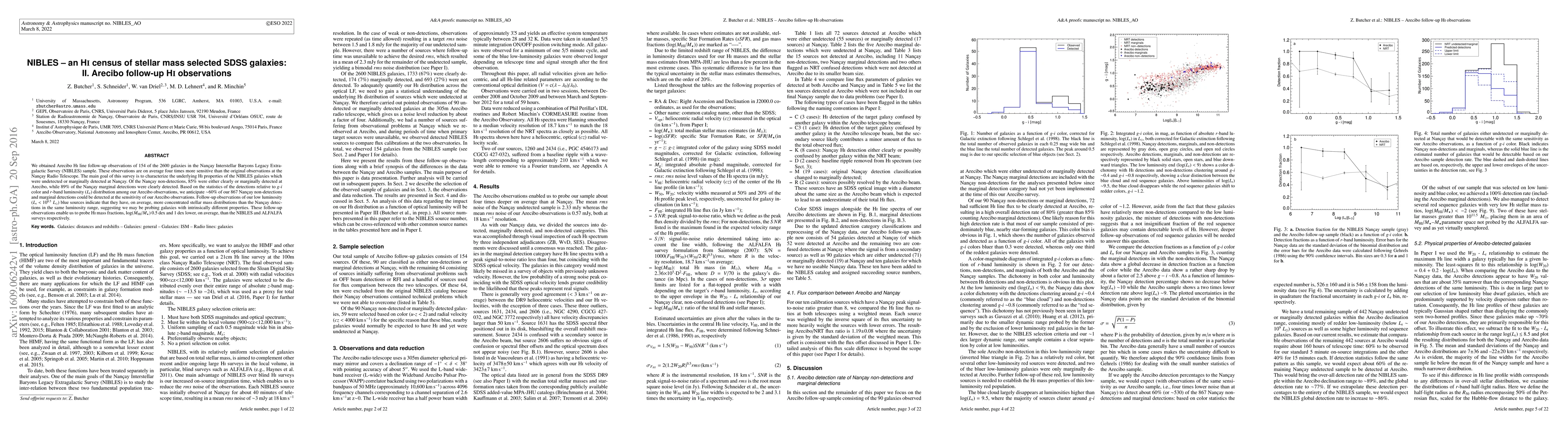 This paper reports Arecibo HI line follow-up observations of galaxies from the NIBLES survey, significantly improving detection sensitivity. The results show that 85% of Nan\c{c}ay non-detections and 89% of marginal detections were detected at Arecibo, suggesting ~60% of Nan\c{c}ay's undetected galaxies could be detected at Arecibo's sensitivity.