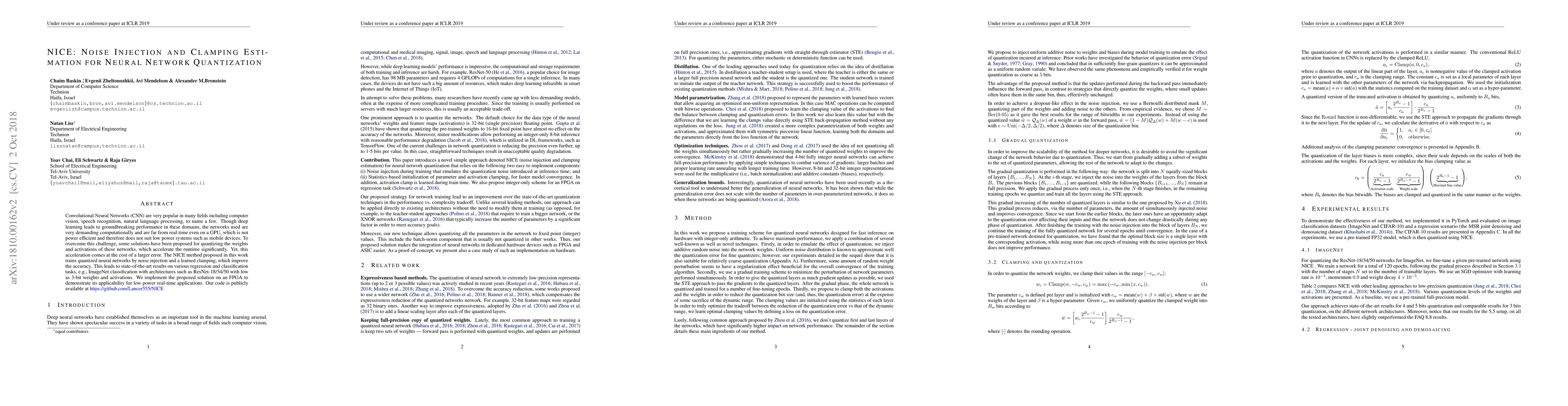 A new method called NICE improves the accuracy of neural networks when they are quantized for low-power applications, achieving state-of-the-art results on various tasks like image classification.