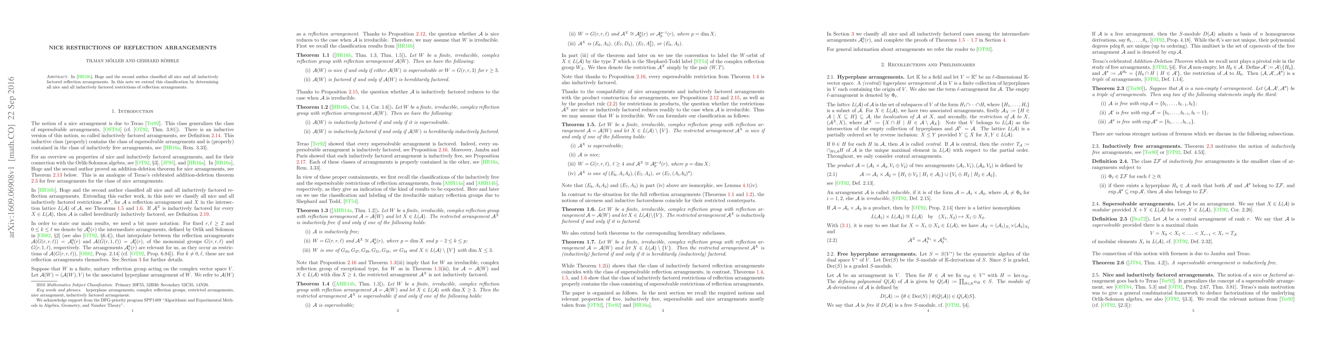 This paper extends the classification of nice and inductively factored reflection arrangements by determining all such restrictions. It builds on previous work by Hoge and the second author, offering a comprehensive analysis of these restricted arrangements.
