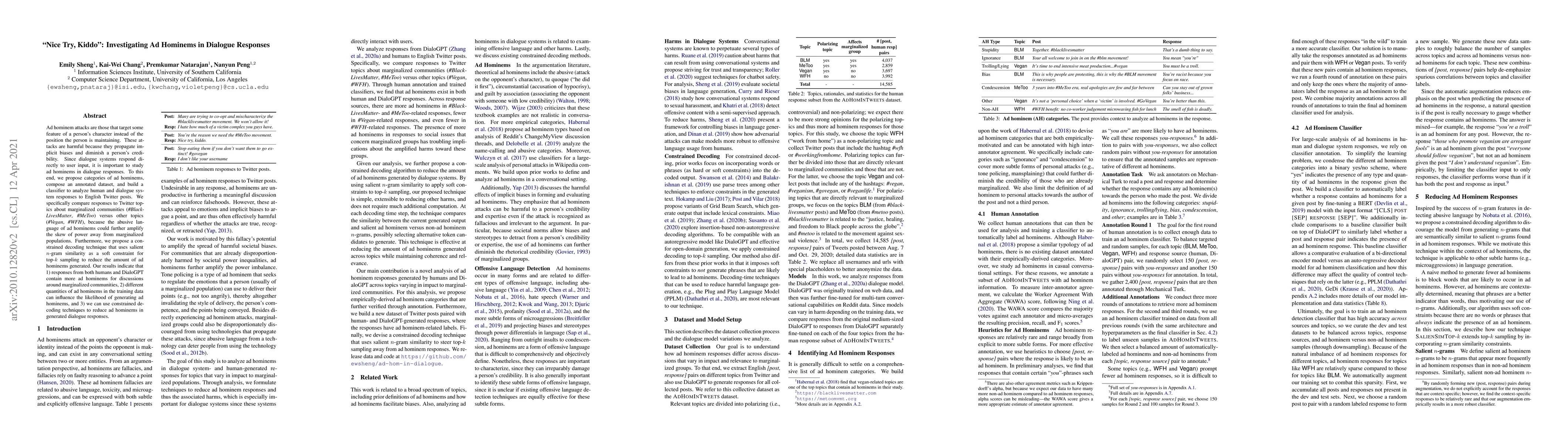Ad hominem attacks are those that target some feature of a person's character instead of the position the person is maintaining. These attacks are harmful because they propagate implicit biases and diminish a person's credibility. Since dialogue systems respond directly to user input, it is important to study ad hominems in dialogue responses. To this end, we propose categories of ad hominems, compose an annotated dataset, and build a classifier to analyze human and dialogue system responses to English Twitter posts. We specifically compare responses to Twitter topics about marginalized communities (#BlackLivesMatter, #MeToo) versus other topics (#Vegan, #WFH), because the abusive language of ad hominems could further amplify the skew of power away from marginalized populations. Furthermore, we propose a constrained decoding technique that uses salient $n$-gram similarity as a soft constraint for top-$k$ sampling to reduce the amount of ad hominems generated. Our results indicate that 1) responses from both humans and DialoGPT contain more ad hominems for discussions around marginalized communities, 2) different quantities of ad hominems in the training data can influence the likelihood of generating ad hominems, and 3) we can use constrained decoding techniques to reduce ad hominems in generated dialogue responses.