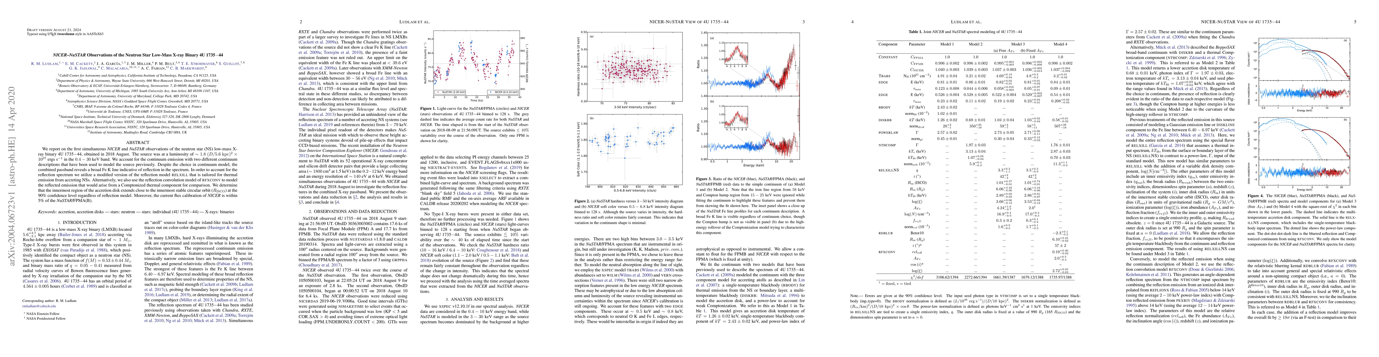 The NICER-NuSTAR collaboration observed 4U 1735-44, a neutron star binary, and measured its luminosity and emission patterns, revealing a broad Fe K line indicating reflection in the spectrum.
