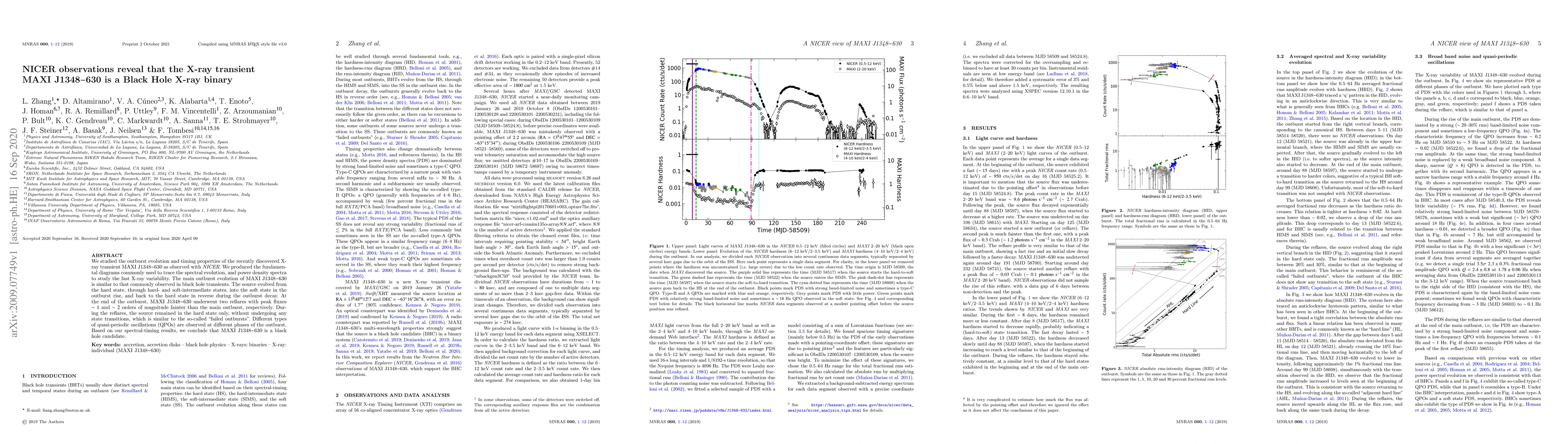 We studied the outburst evolution and timing properties of the recently discovered X-ray transient MAXI J1348-630 as observed with NICER. We produced the fundamental diagrams commonly used to trace the spectral evolution, and power density spectra to study the fast X-ray variability. The main outburst evolution of MAXI J1348-630 is similar to that commonly observed in black hole transients. The source evolved from the hard state, through hard- and soft-intermediate states, into the soft state in the outburst rise, and back to the hard state in reverse during the outburst decay. At the end of the outburst, MAXI J1348-630 underwent two reflares with peak fluxes ~1 and ~2 orders of magnitude fainter than the main outburst, respectively. During the reflares, the source remained in the hard state only, without undergoing any state transitions, which is similar to the so-called "failed outbursts". Different types of quasi-periodic oscillations (QPOs) are observed at different phases of the outburst. Based on our spectral-timing results, we conclude that MAXI J1348-630 is a black hole candidate.