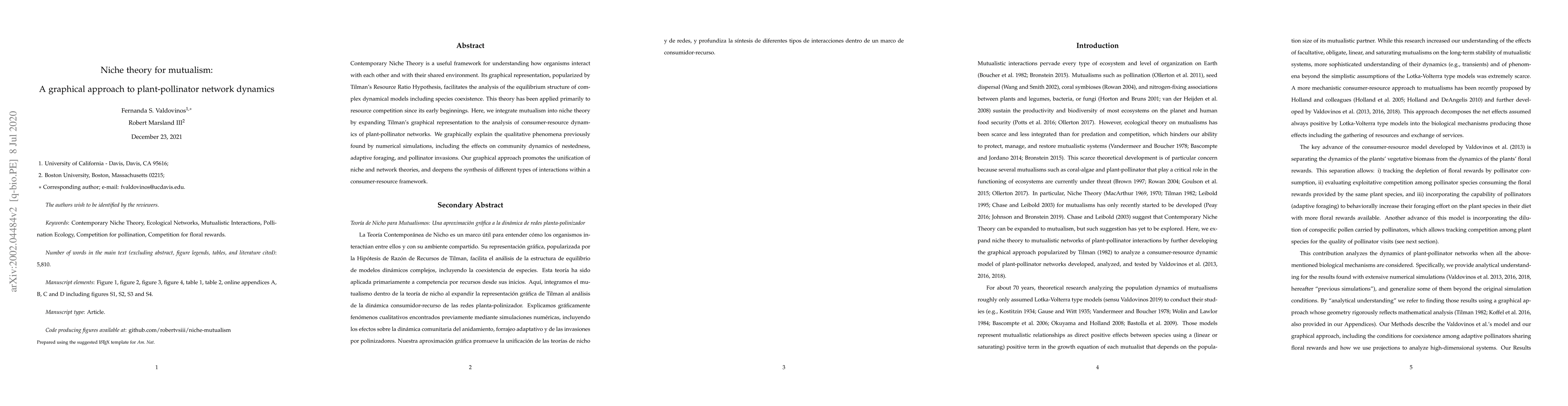 This paper integrates Niche Theory into mutualism by applying Tilman's graphical representation to plant-pollinator networks, explaining community dynamics phenomena like nestedness, adaptive foraging, and pollinator invasions. The graphical approach unifies niche and network theories, enhancing the understanding of diverse interactions within a consumer-resource framework.