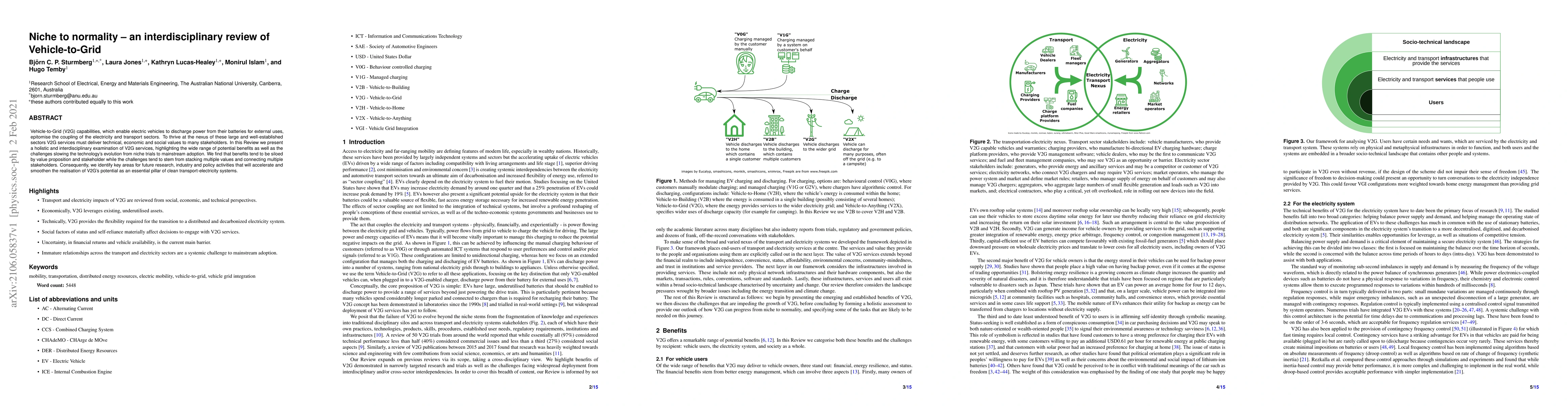 This interdisciplinary review explores the potential and challenges of Vehicle-to-Grid (V2G) technology, emphasizing its role in integrating electricity and transport sectors. It identifies benefits and hurdles that hinder V2G's mainstream adoption, suggesting areas for future research and policy to enhance its role in clean transport-electricity systems.