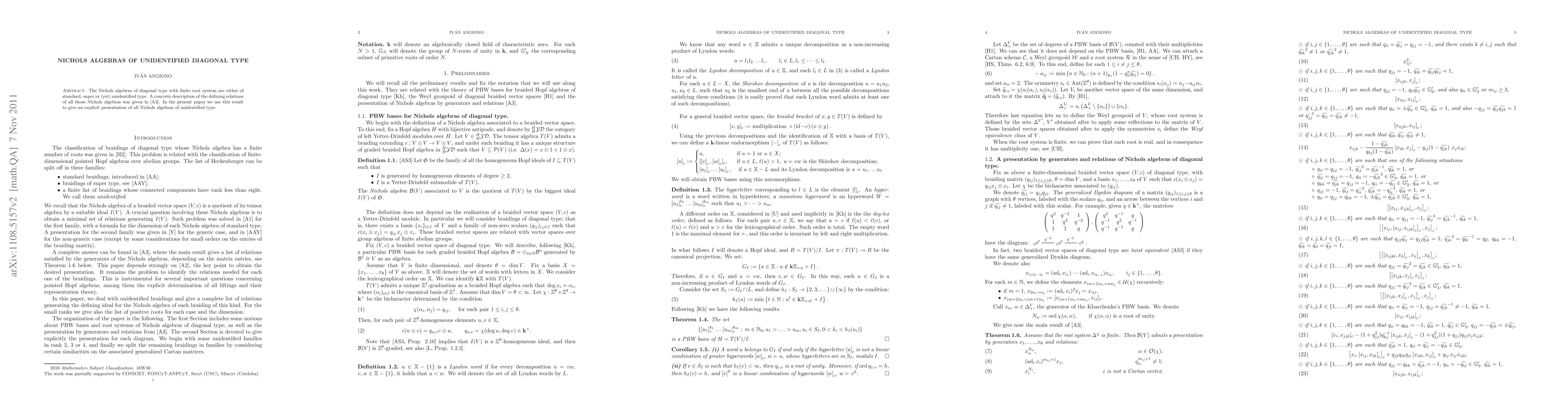 Summary: This paper provides an explicit presentation for Nichols algebras of unidentified diagonal type, building on prior work that classified these algebras into standard, super, or unidentified types. It focuses specifically on describing the defining relations for the unidentified type.