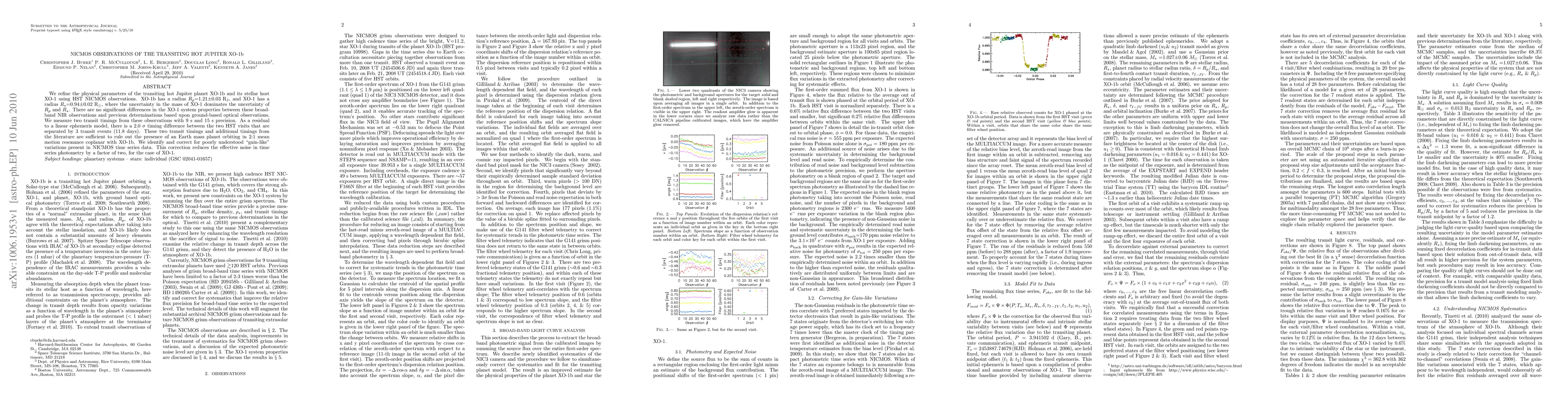 This study refines the physical parameters of XO-1b and its host star XO-1 using HST NICMOS observations, finding no significant differences from previous optical measurements. The analysis rules out a potential Earth-mass planet in a 2:1 resonance with XO-1b.