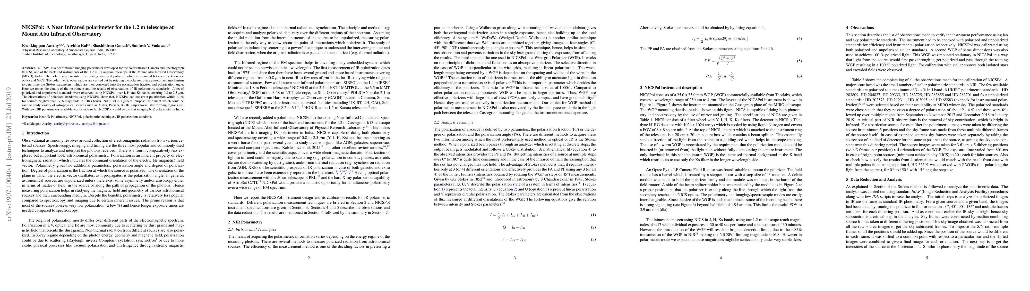 NICSPol is a near-infrared imaging polarimeter developed for the 1.2 m telescope at Mount Abu Infrared Observatory, designed to measure polarization in the J, H, and Ks bands. It can constrain polarization within ~1% for bright sources, making it a versatile tool for studying various astrophysical phenomena.
