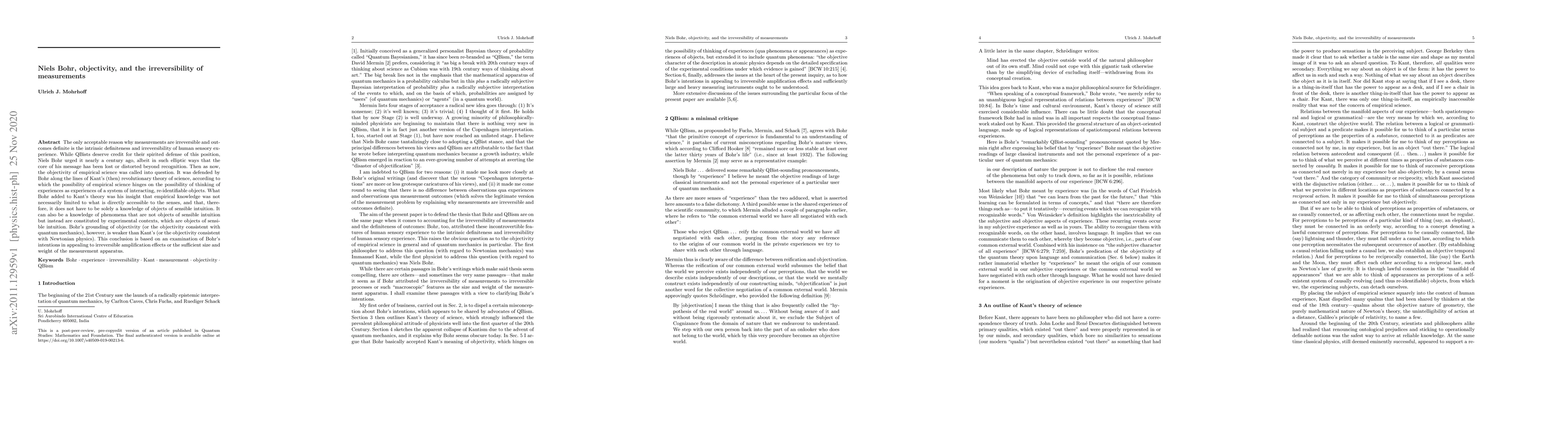 The only acceptable reason why measurements are irreversible and outcomes definite is the intrinsic definiteness and irreversibility of human sensory experience. While QBists deserve credit for their spirited defense of this position, Niels Bohr urged it nearly a century ago, albeit in such elliptic ways that the core of his message has been lost or distorted beyond recognition. Then as now, the objectivity of empirical science was called into question. It was defended by Bohr along the lines of Kant's (then) revolutionary theory of science, according to which the possibility of empirical science hinges on the possibility of thinking of experiences as experiences of a system of interacting, re-identifiable objects. What Bohr added to Kant's theory was his insight that empirical knowledge was not necessarily limited to what is directly accessible to the senses, and that, therefore, it does not have to be solely a knowledge of objects of sensible intuition. It can also be a knowledge of phenomena that are not objects of sensible intuition but instead are constituted by experimental contexts, which are objects of sensible intuition. Bohr's grounding of objectivity (or the objectivity consistent with quantum mechanics), however, is weaker than Kant's (or the objectivity consistent with Newtonian physics). This conclusion is based on an examination of Bohr's intentions in appealing to irreversible amplification effects or the sufficient size and weight of the measurement apparatus.