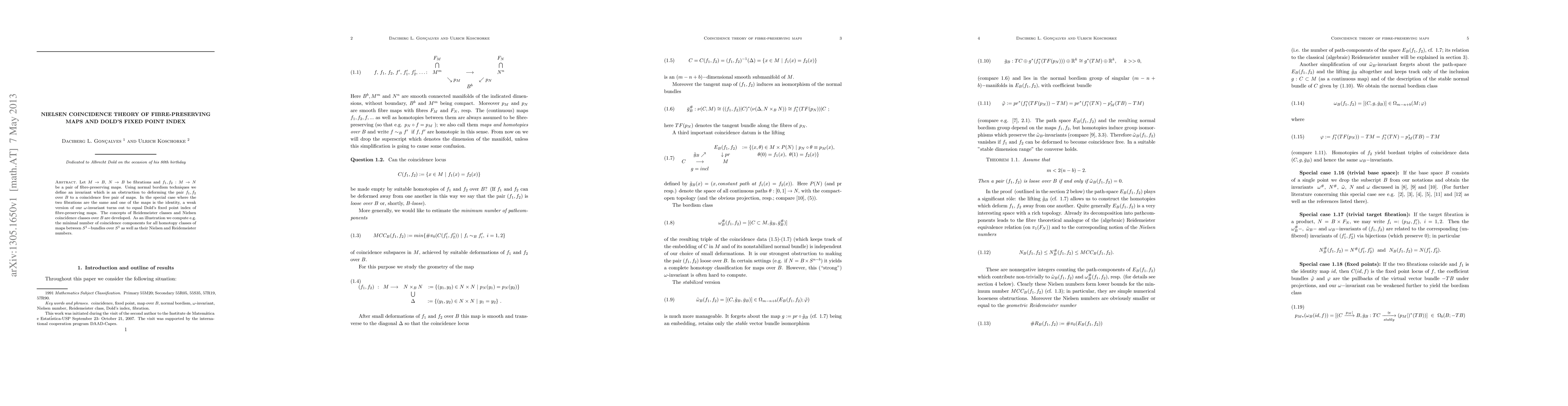 This paper introduces an invariant using normal bordism techniques to obstruct the deformation of fibre-preserving maps to a coincidence-free pair. It connects this invariant to Dold's fixed point index in specific cases, and develops concepts like Reidemeister and Nielsen classes to compute coincidence numbers for maps between S^1-bundles.