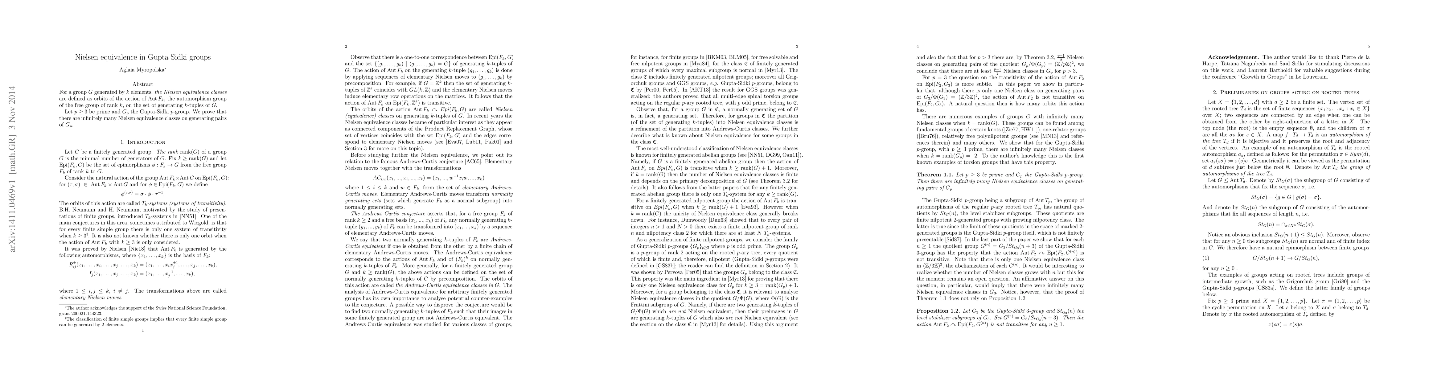 The paper presents a detailed proof of the infinitude of Nielsen equivalence classes in Gupta-Sidki groups, leveraging their automorphism group actions on rooted trees and properties of finite quotients.