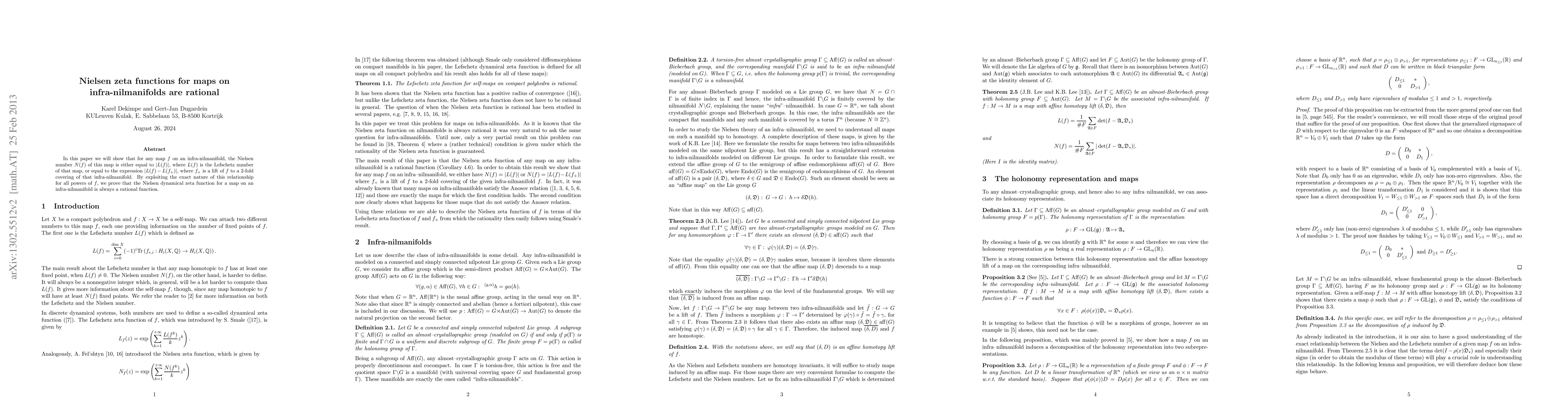 This paper demonstrates that the Nielsen dynamical zeta function for any map on an infra-nilmanifold is rational, showing that the Nielsen number $N(f)$ is either $|L(f)|$ or $|L(f)-L(f_+)|$, where $L(f)$ and $L(f_+)$ are the Lefschetz numbers of $f$ and its lift to a 2-fold covering, respectively.