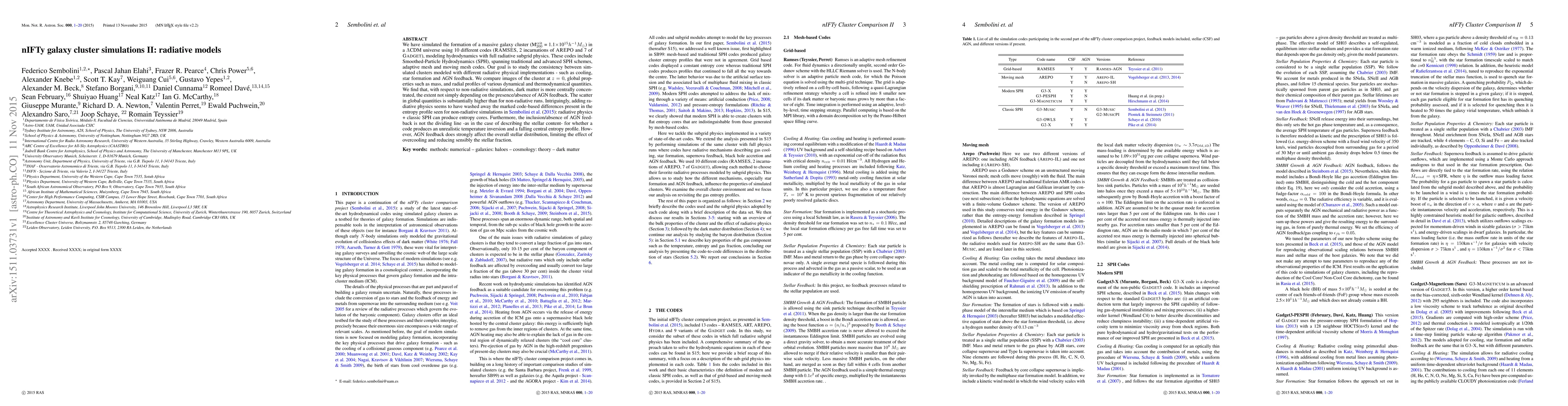This paper simulates the formation of a massive galaxy cluster using 10 different hydrodynamics codes with full radiative subgrid physics. The study finds that while radiative models centralize dark matter more than non-radiative simulations, the scatter in global properties is higher. Radiative physics diminishes code-based differences in entropy profiles, and AGN feedback significantly influences the stellar distribution, reducing overcooling and the stellar fraction.