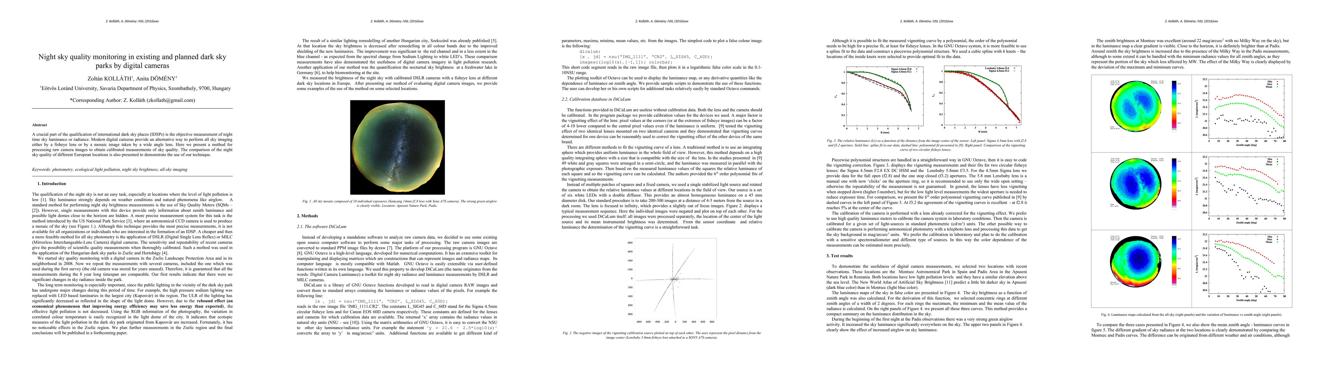 This paper proposes a method using digital cameras to objectively measure night sky luminance for qualifying international dark sky places, and demonstrates its application by comparing sky quality across various European locations.