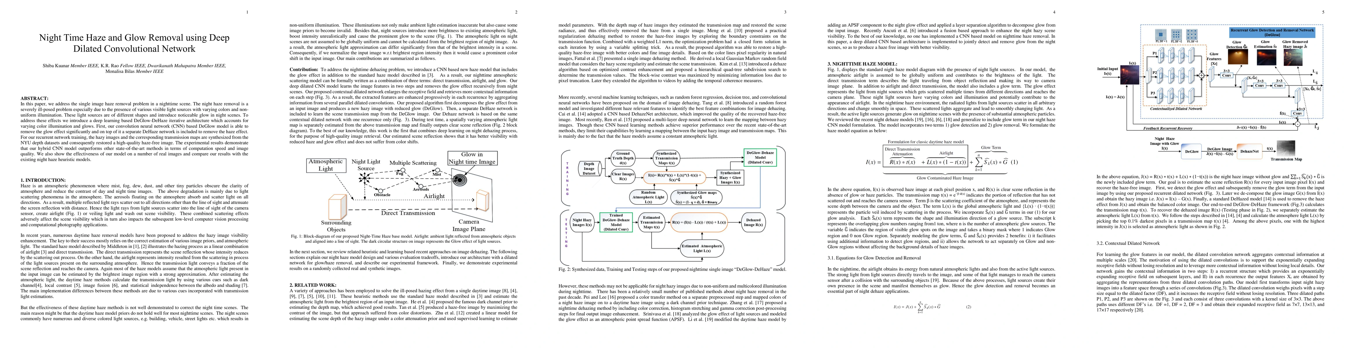 This paper proposes a deep learning-based DeGlow-DeHaze architecture to remove night time haze and glow from images, using a CNN for de-glowing followed by a separate network for haze removal. Experimental results show improved performance over existing methods in both speed and image quality.