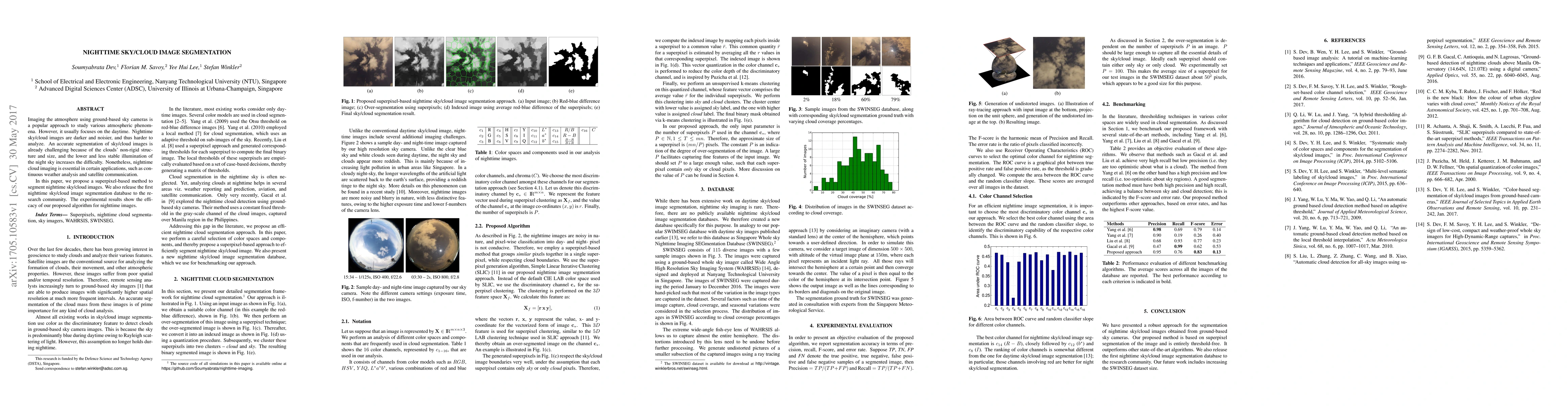 A new method using superpixels is proposed for segmenting nighttime sky/cloud images, improving accuracy and efficiency in analyzing atmospheric phenomena.