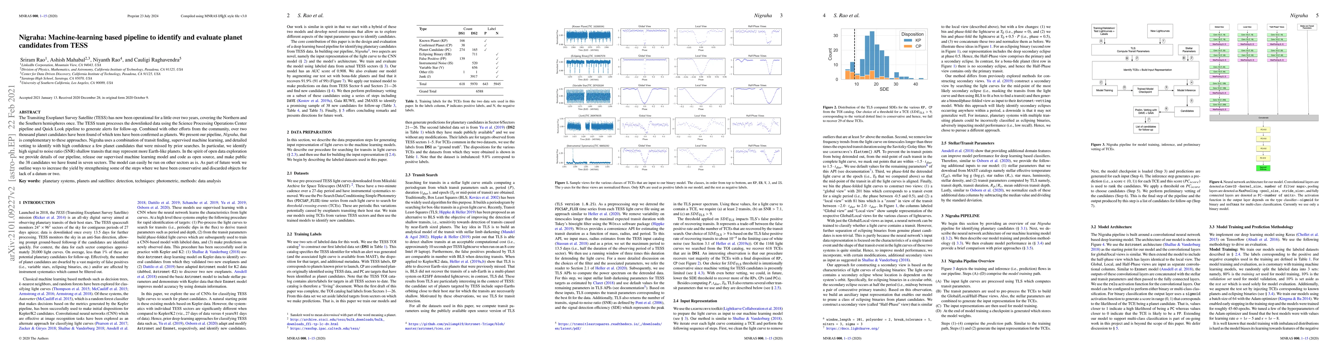 The Nigraha pipeline employs machine learning to identify and evaluate planet candidates from TESS data, focusing on high SNR shallow transits. It complements existing methods by releasing its model and code openly, identifying 38 candidates in seven sectors.