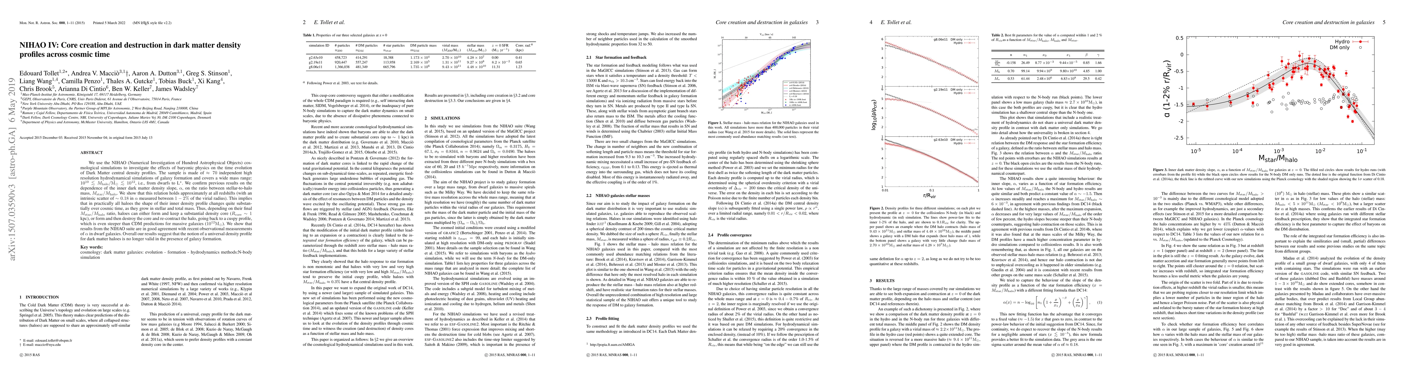 The NIHAO IV simulations reveal that baryonic physics significantly alters dark matter density profiles over cosmic time, causing core creation or destruction in halos. The study shows that the inner density slope, $\alpha$, depends on the stellar-to-halo mass ratio, leading to a substantial evolution in the shape of dark matter profiles in galaxies.