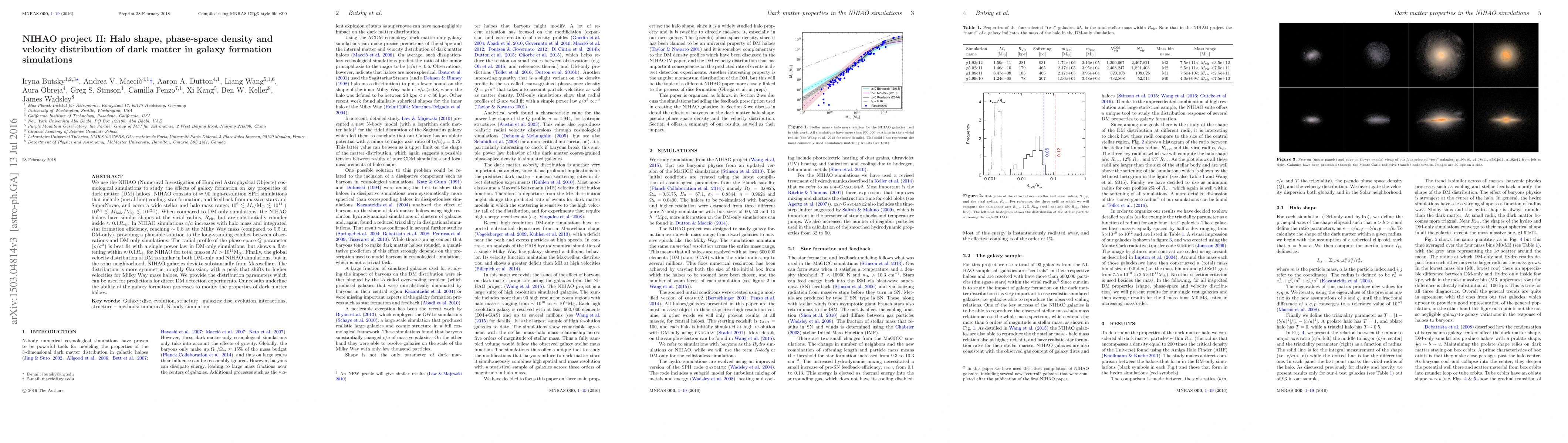 The NIHAO simulations reveal that galaxy formation significantly alters the shape, phase-space density, and velocity distribution of dark matter haloes, making them rounder and deviating from the Maxwellian distribution in the solar neighborhood. These modifications provide a plausible resolution to the discrepancy between observed and DM-only simulation halo shapes.