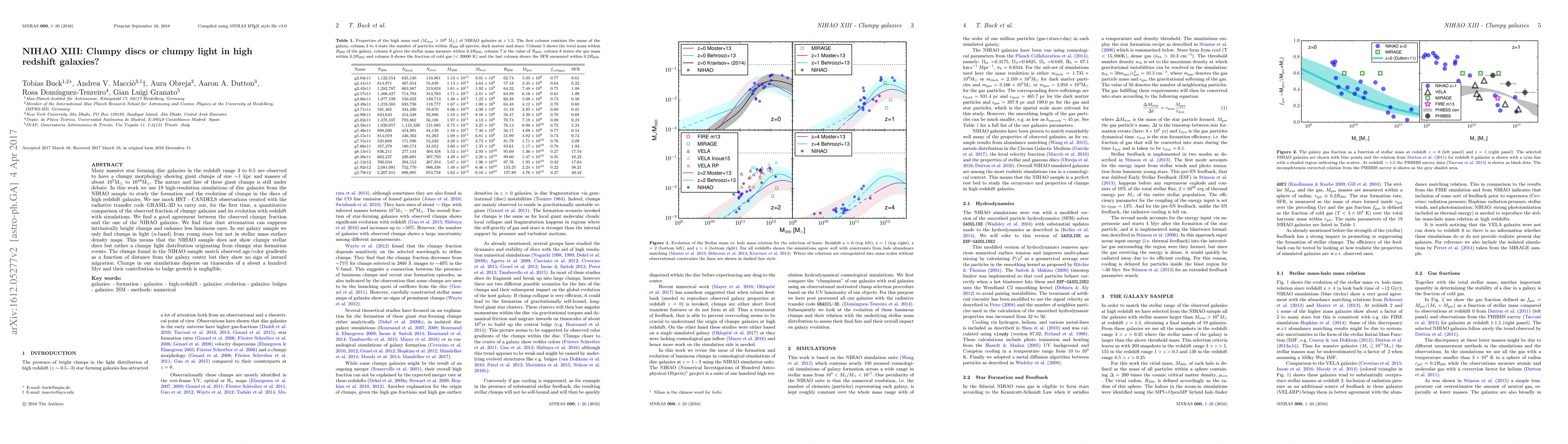 NIHAO XIII investigates the clumpy morphology of high redshift galaxies, finding that clumps in simulated galaxies are primarily due to clumpy star formation rather than clumpy stellar discs. The study shows that dust attenuation affects the observed brightness of these clumps, leading to a clumpy light distribution.
