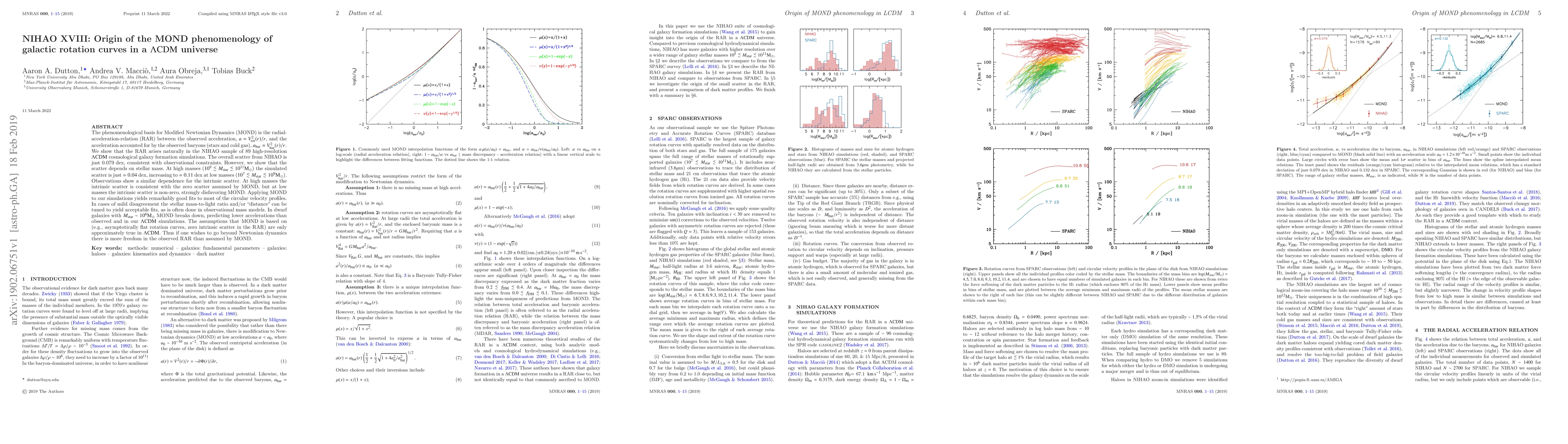 The NIHAO simulations demonstrate that the radial-acceleration-relation (RAR) underlying Modified Newtonian Dynamics (MOND) naturally emerges in LCDM cosmology, with a small intrinsic scatter. However, the scatter's dependence on stellar mass suggests MOND's assumptions are not strictly valid, especially in low-mass galaxies where MOND fails to predict observed accelerations.