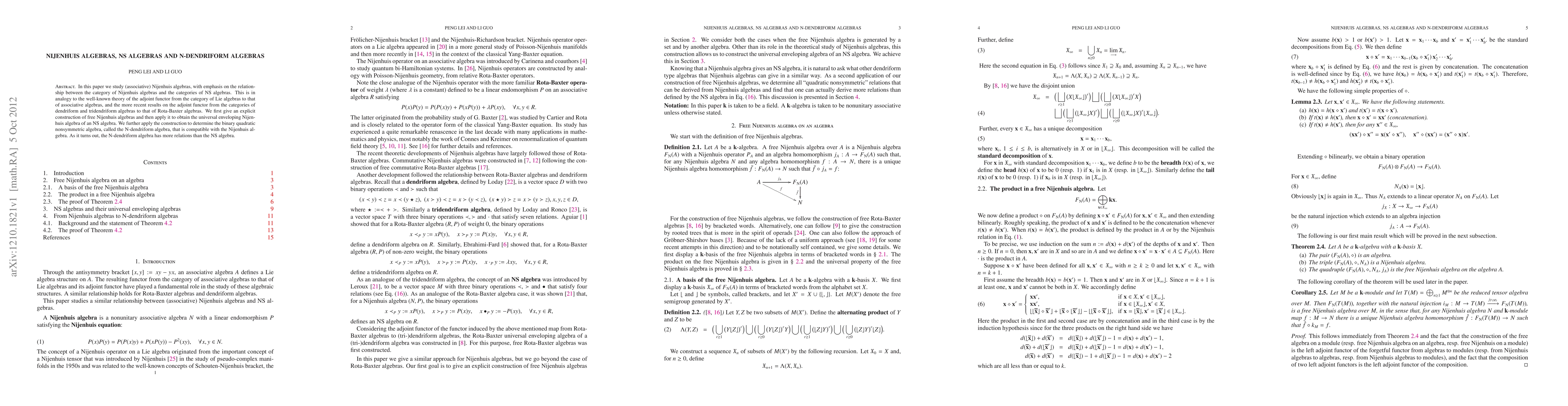 This paper investigates (associative) Nijenhuis algebras and their connection to NS algebras, analogous to adjoint functors linking Lie algebras to associative algebras and dendriform algebras to Rota-Baxter algebras. It constructs free Nijenhuis algebras and explores the universal enveloping Nijenhuis algebra of NS algebras, ultimately determining the N-dendriform algebra, which has more relations than the NS algebra.