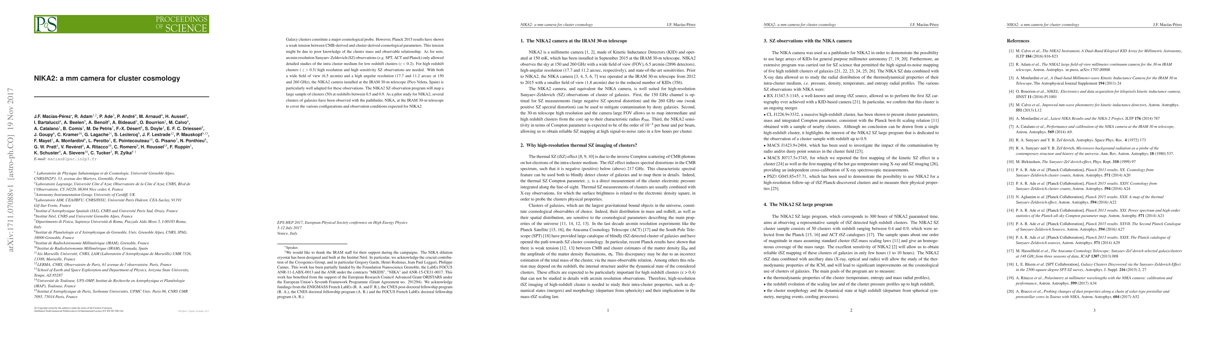 The NIKA2 camera uses a mm camera to study galaxy clusters at high redshifts, aiming to resolve the tension between CMB-derived and cluster-derived cosmological parameters.