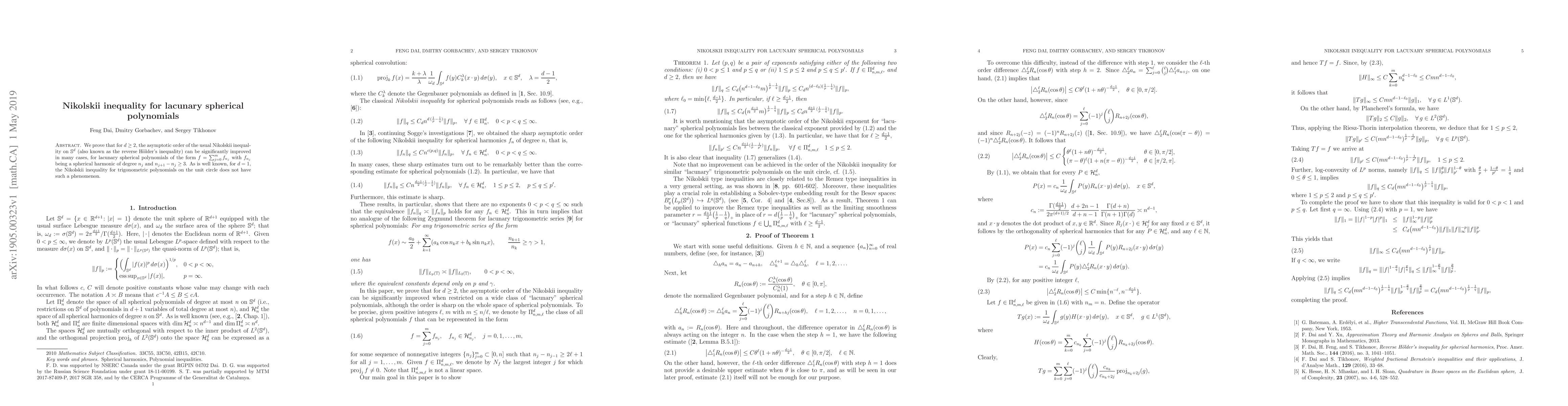 We prove that for $d\ge 2$, the asymptotic order of the usual Nikolskii inequality on $\mathbb{S}^d$ (also known as the reverse H\"{o}lder's inequality) can be significantly improved in many cases, for lacunary spherical polynomials of the form $f=\sum_{j=0}^m f_{n_j}$ with $f_{n_j}$ being a spherical harmonic of degree $n_j$ and $n_{j+1}-n_j\ge 3$. As is well known, for $d=1$, the Nikolskii inequality for trigonometric polynomials on the unit circle does not have such a phenomenon.