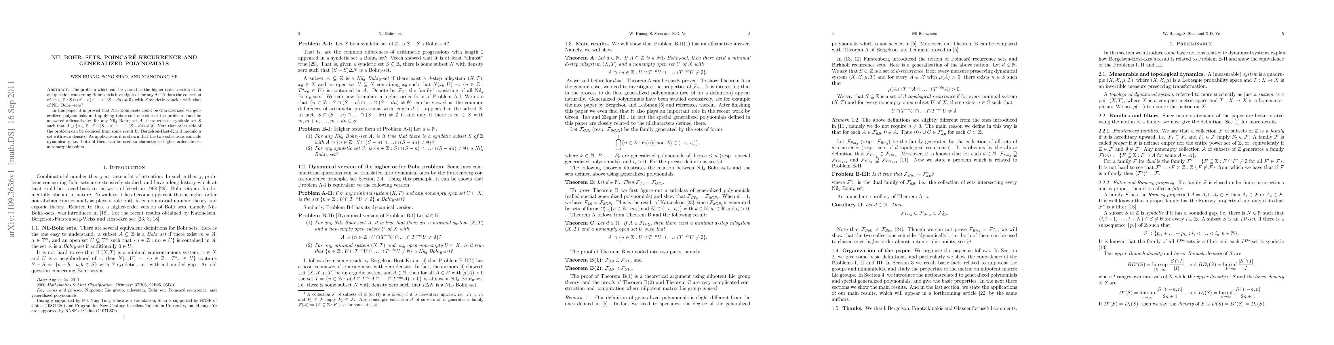 The problem which can be viewed as the higher order version of an old question concerning Bohr sets is investigated: for any $d\in \N$ does the collection of $\{n\in \Z: S\cap (S-n)\cap...\cap (S-dn)\neq \emptyset\}$ with $S$ syndetic coincide with that of Nil$_d$ Bohr$_0$-sets? In this paper it is proved that Nil$_d$ Bohr$_0$-sets could be characterized via generalized polynomials, and applying this result one side of the problem could be answered affirmatively: for any Nil$_d$ Bohr$_0$-set $A$, there exists a syndetic set $S$ such that $A\supset \{n\in \Z: S\cap (S-n)\cap...\cap (S-dn)\neq \emptyset\}.$ Note that other side of the problem can be deduced from some result by Bergelson-Host-Kra if modulo a set with zero density. As applications it is shown that the two collections coincide dynamically, i.e. both of them can be used to characterize higher order almost automorphic points.