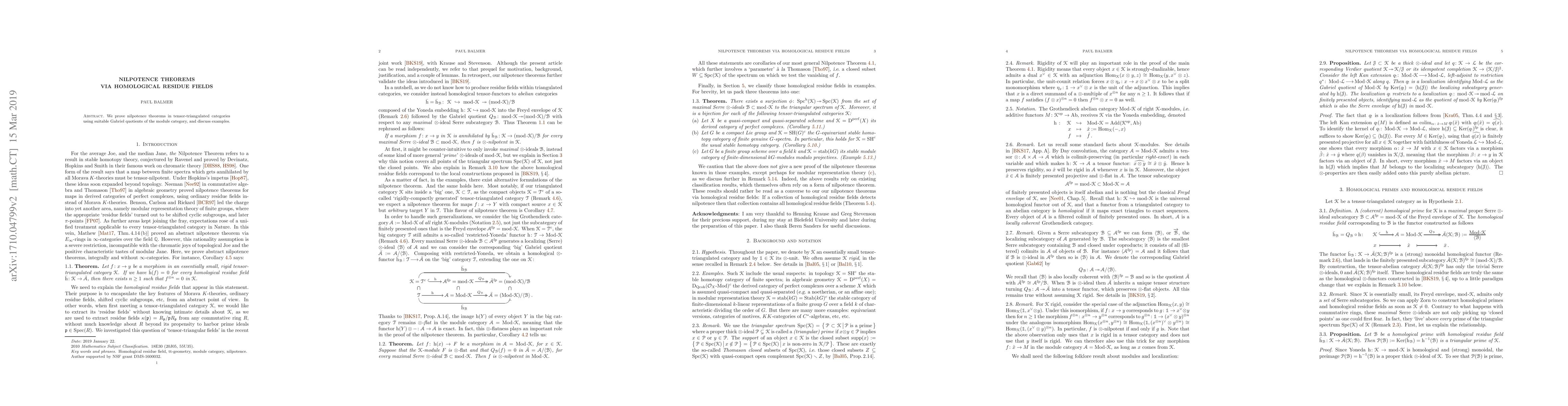 We prove nilpotence theorems in tensor-triangulated categories using suitable Gabriel quotients of the module category, and discuss examples.