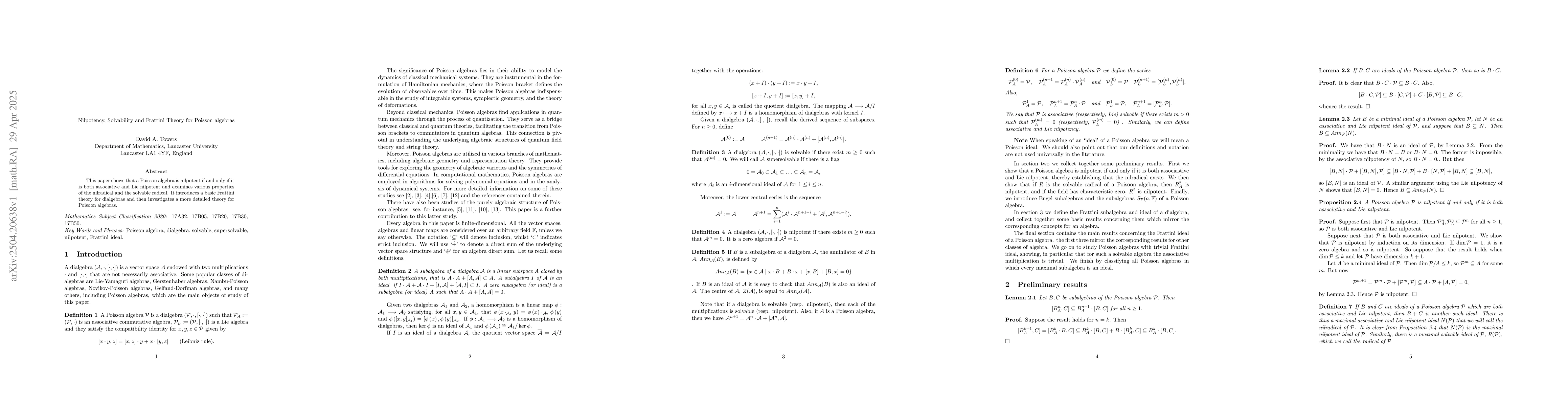 A Poisson algebra is nilpotent if it's both associative and Lie nilpotent, with new Frattini theory introduced for dialgebras and investigated further for Poisson algebras.