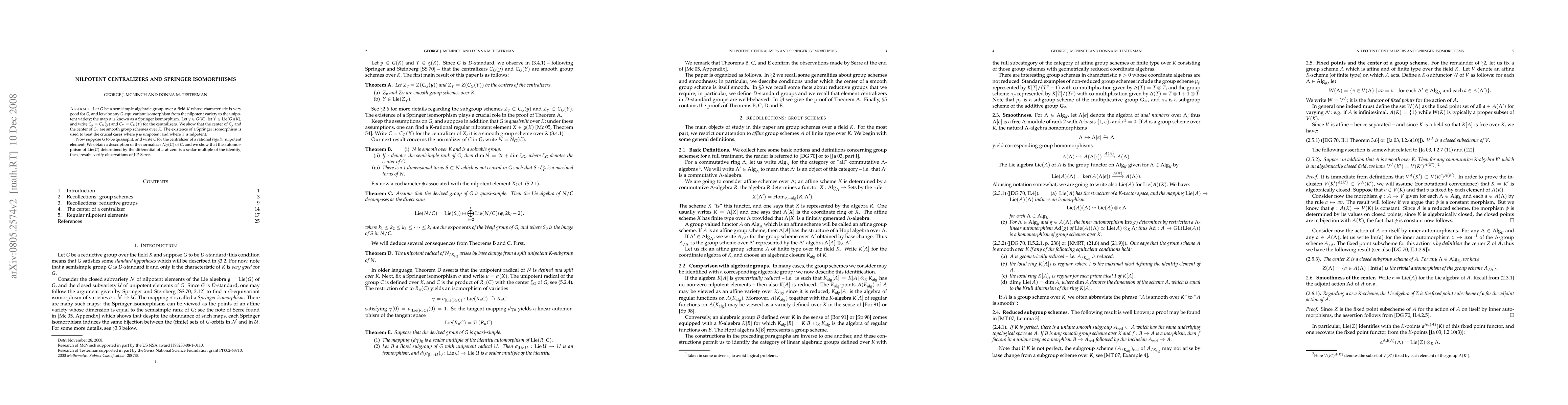 This paper investigates the centralizers of unipotent elements in semisimple algebraic groups, showing that their centers are smooth group schemes. It uses Springer isomorphisms to analyze cases where elements are unipotent or nilpotent, and provides a detailed description of the normalizer of the centralizer of a rational regular nilpotent element, verifying observations by J-P. Serre.