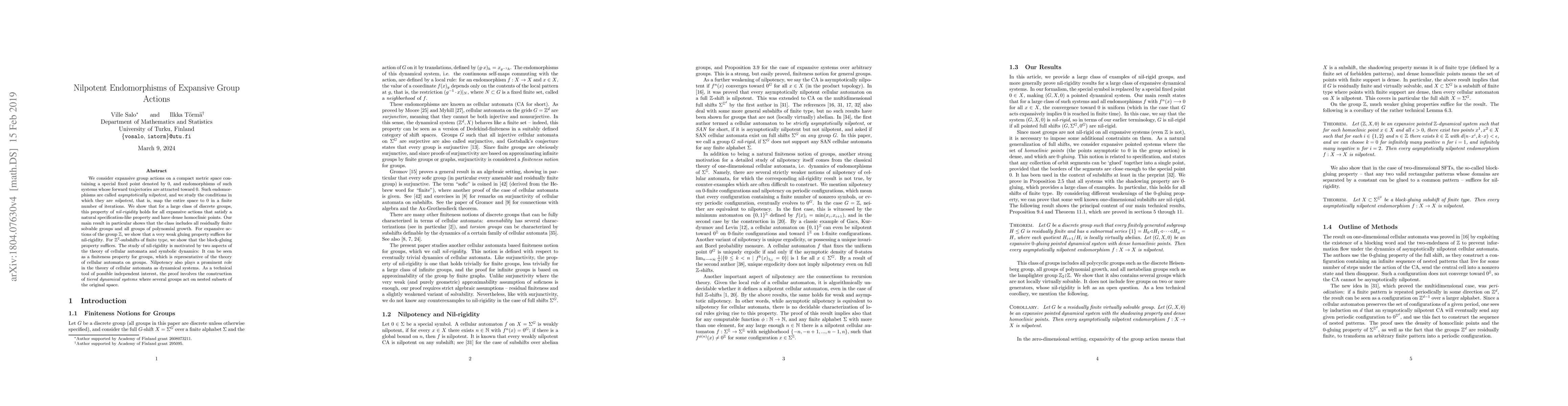 This paper investigates expansive group actions with fixed points, focusing on endomorphisms that attract trajectories to this point, termed asymptotically nilpotent. It demonstrates that for broad classes of discrete groups, expansive actions satisfying certain properties are nilpotent, mapping the entire space to the fixed point in finite iterations, particularly for residually finite solvable and polynomial growth groups. The study ties into cellular automata and symbolic dynamics, highlighting the finiteness properties and nilpotency in dynamical systems.