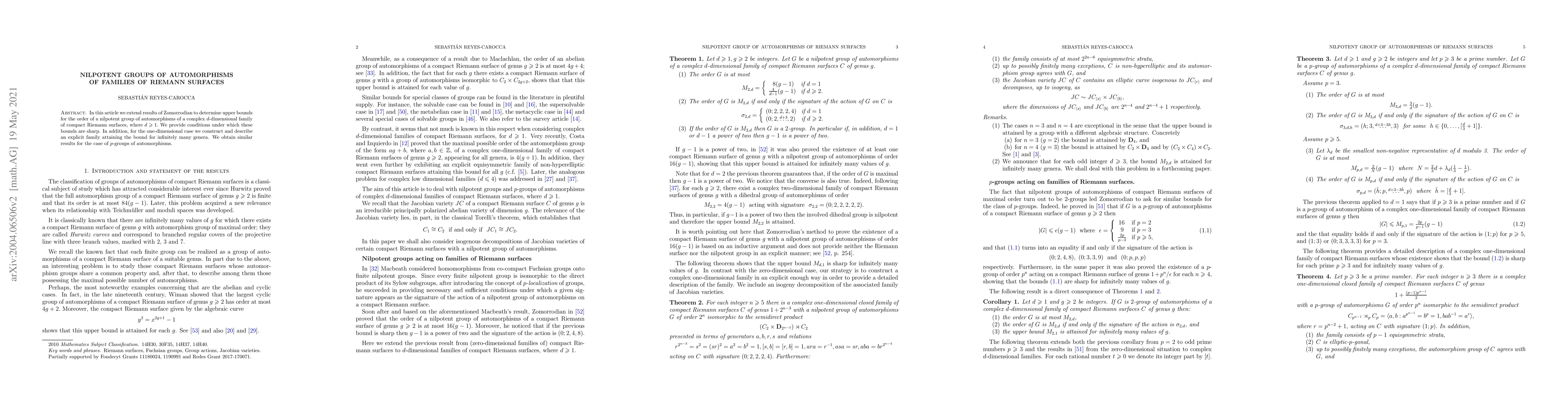 The work extends existing results by Zomorrodian, offering new insights into the structure of automorphism groups of Riemann surface families, particularly focusing on nilpotent groups and providing explicit constructions.