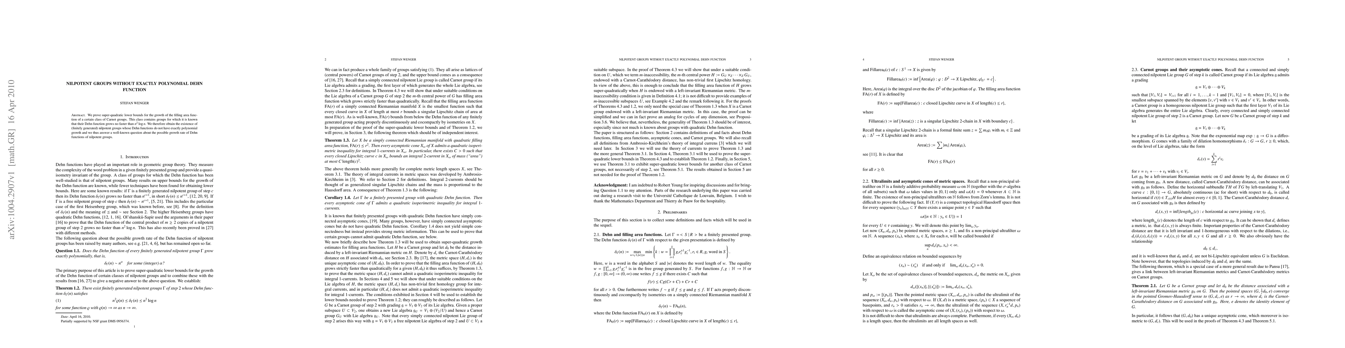 This paper proves super-quadratic lower bounds for the filling area function of certain Carnot groups, demonstrating the existence of finitely generated nilpotent groups with Dehn functions that do not exhibit exactly polynomial growth, answering a longstanding question on their growth rates.