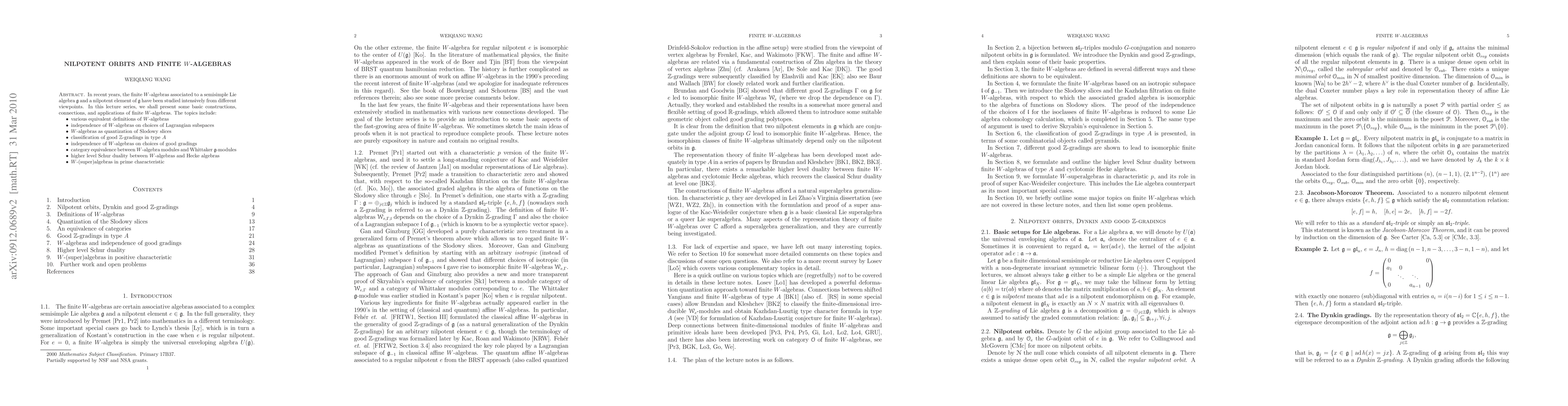 This paper explores the relationships between nilpotent orbits in semisimple Lie algebras and finite W-algebras, detailing fundamental constructions, relevant connections, and practical applications of these algebras. The lecture series aims to elucidate these intricate links and their implications.