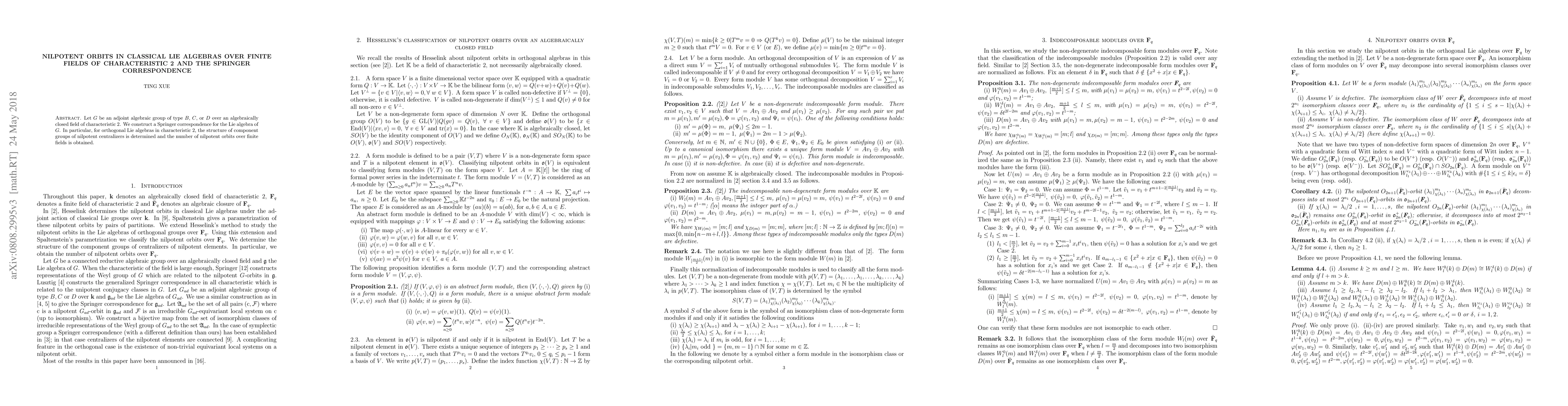 This paper constructs a Springer correspondence for adjoint algebraic groups of types $B$, $C$, and $D$ over a field of characteristic 2, determining the structure of nilpotent centralizers and calculating the number of nilpotent orbits over finite fields.