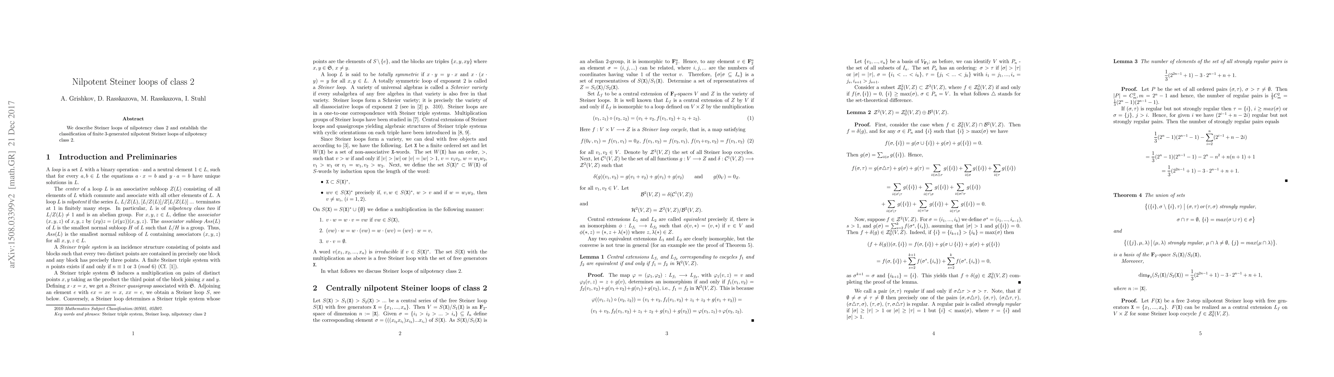This paper classifies finite 3-generated nilpotent Steiner loops with nilpotency class 2, providing a detailed description of their structure and properties. The research establishes a comprehensive understanding of these specific loops within the broader context of algebraic systems.