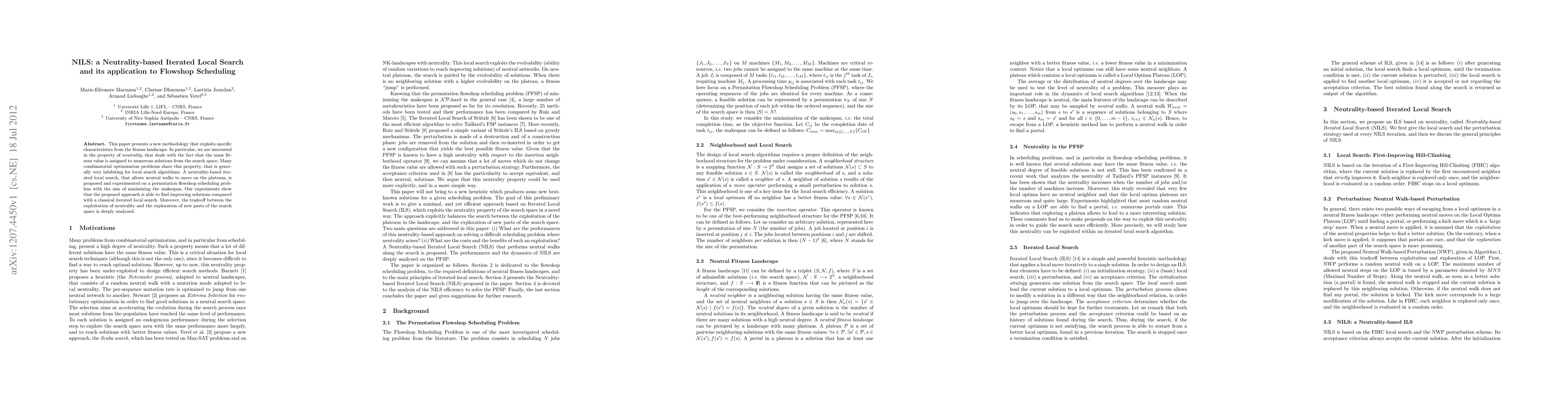 This paper presents a new methodology that exploits specific characteristics from the fitness landscape. In particular, we are interested in the property of neutrality, that deals with the fact that the same fitness value is assigned to numerous solutions from the search space. Many combinatorial optimization problems share this property, that is generally very inhibiting for local search algorithms. A neutrality-based iterated local search, that allows neutral walks to move on the plateaus, is proposed and experimented on a permutation flowshop scheduling problem with the aim of minimizing the makespan. Our experiments show that the proposed approach is able to find improving solutions compared with a classical iterated local search. Moreover, the tradeoff between the exploitation of neutrality and the exploration of new parts of the search space is deeply analyzed.