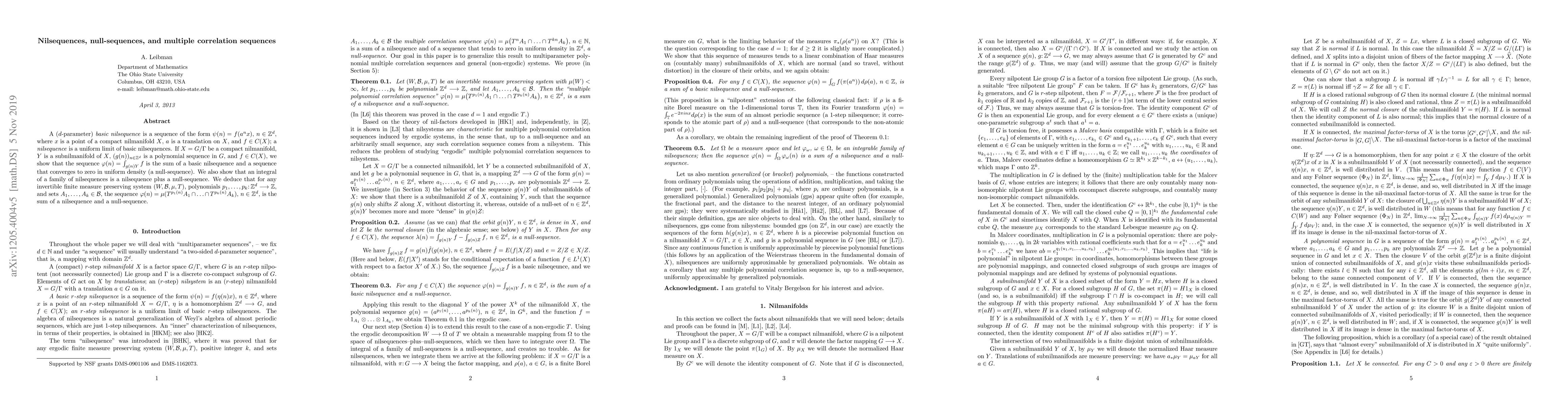 This paper investigates nilsequences, which are limits of basic nilsequences defined on compact nilmanifolds, and demonstrates that certain polynomial sequences and integrals over subnilmanifolds can be expressed as a sum of a basic nilsequence and a null-sequence that converges to zero. The results extend to multiple correlation sequences in measure-preserving systems, showing they decompose into a nilsequence and a null-sequence.