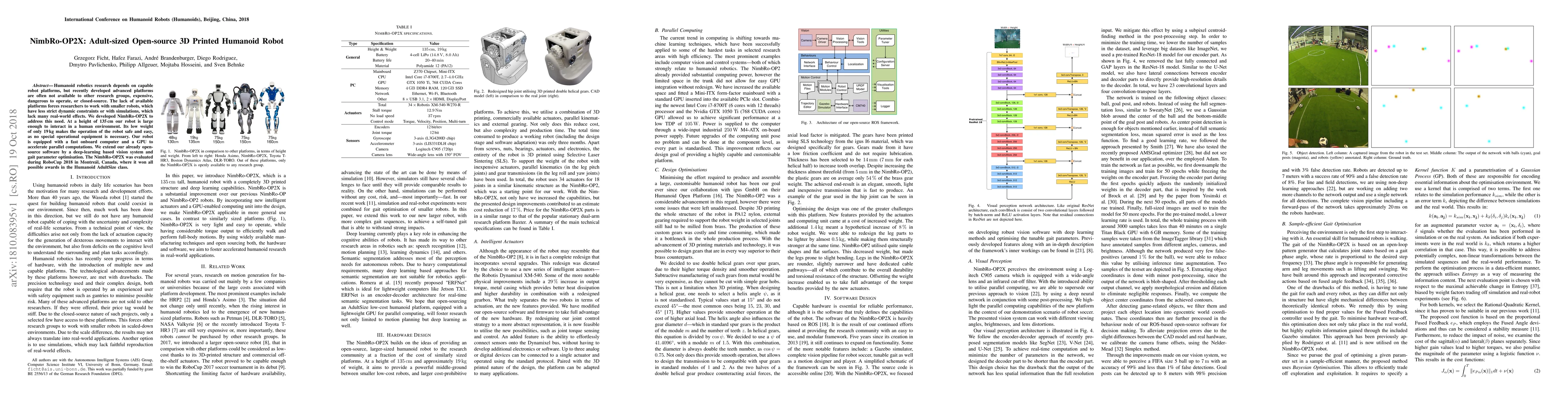 The NimbRo-OP2X is an adult-sized, open-source, 3D printed humanoid robot designed to be affordable, safe, and accessible for research. It won awards at RoboCup 2018, showcasing its capabilities in the Humanoid AdultSize class.