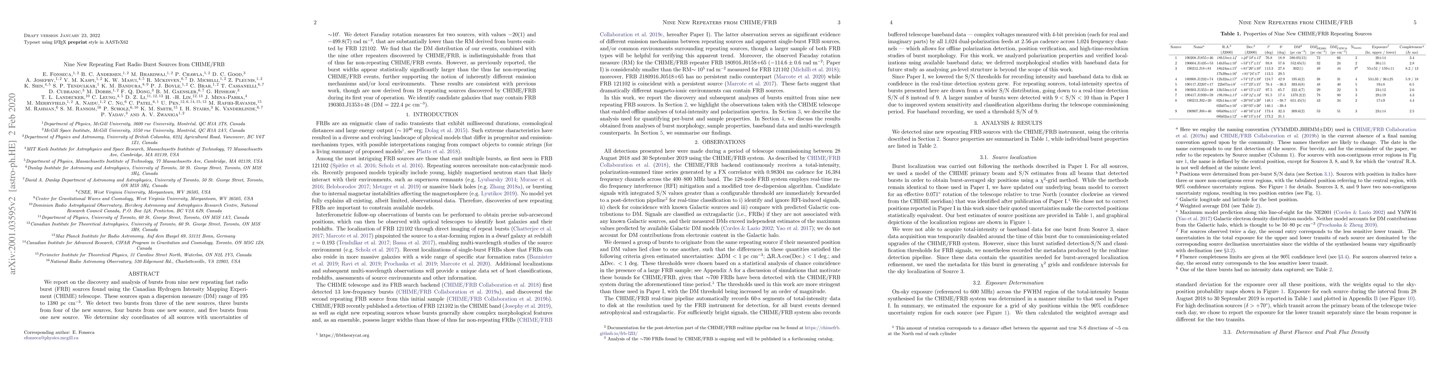 This paper reports the discovery of nine new repeating fast radio burst (FRB) sources using the CHIME telescope, detecting multiple bursts from several sources and determining their sky coordinates. The findings suggest different emission mechanisms or environments for repeating FRBs compared to non-repeating ones.
