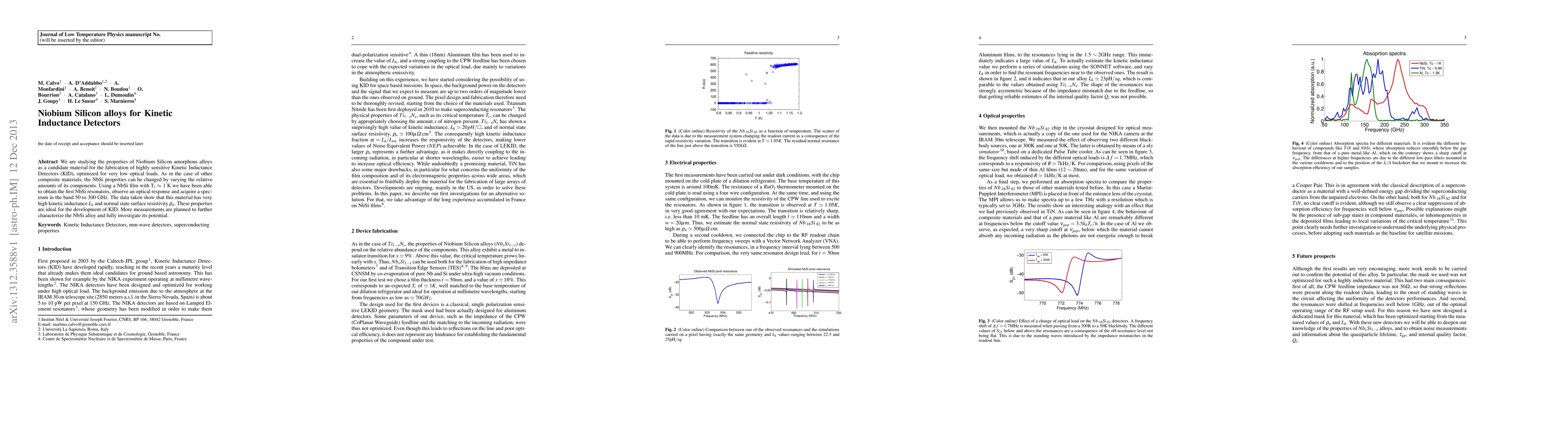 This study explores Niobium Silicon amorphous alloys as potential materials for highly sensitive Kinetic Inductance Detectors (KID), demonstrating the fabrication of NbSi resonators with optimal properties for low optical loads. Initial results show high kinetic inductance and normal state surface resistivity, promising for KID development.