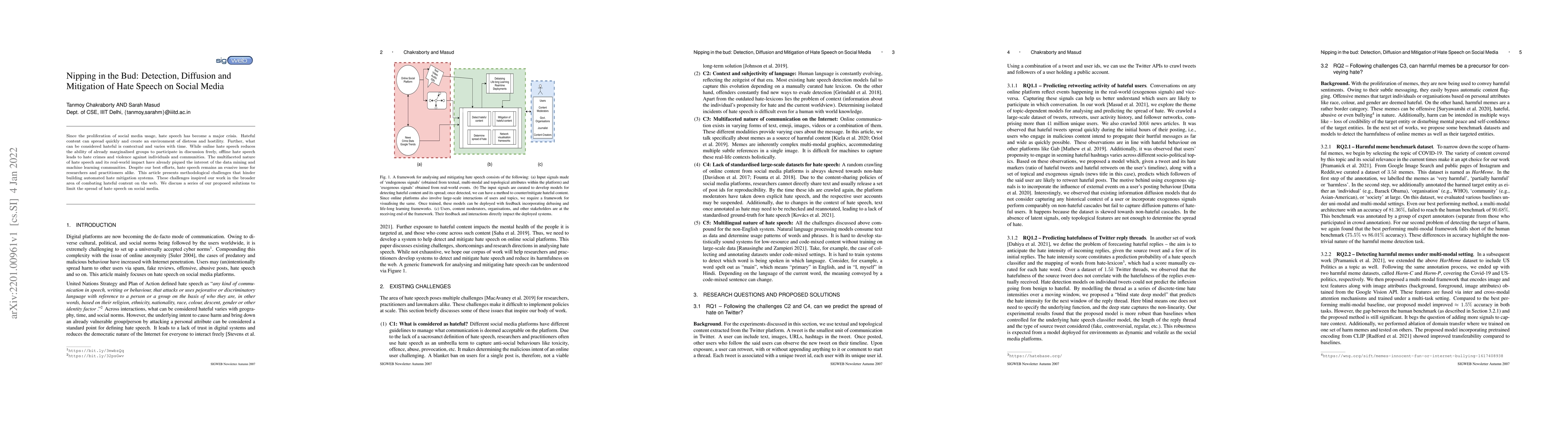 This paper explores the pervasive issue of hate speech on social media, emphasizing its rapid spread and real-world consequences. It outlines the methodological challenges in developing automated systems to detect and mitigate hate speech, and proposes several solutions to address these challenges.