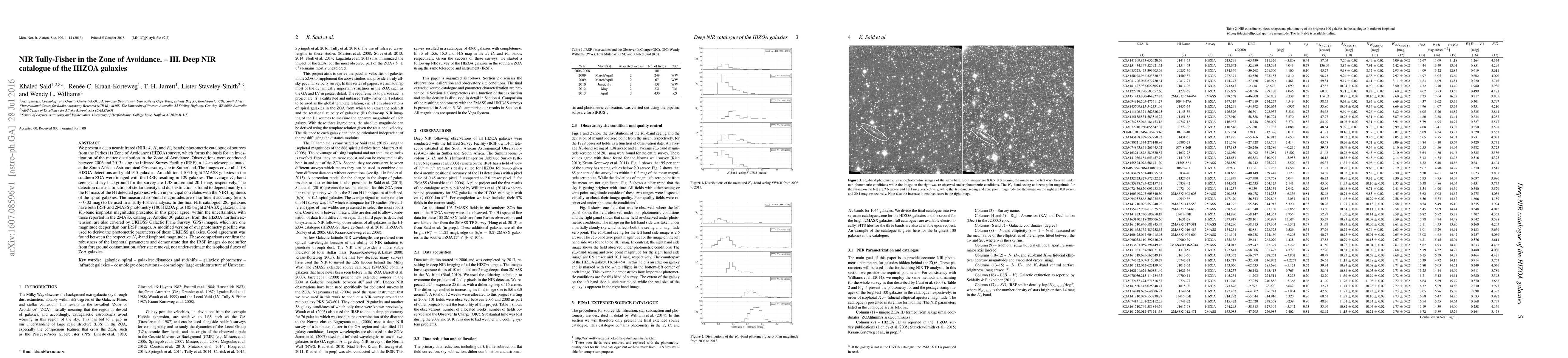 We present a deep near-infrared (NIR) photometric catalogue of sources from the Parkes HI Zone of Avoidance (HIZOA) survey, which forms the basis for an investigation of the matter distribution in the Zone of Avoidance. Observations were conducted between 2006 and 2013 using the Infrared Survey Facility (IRSF), a 1.4-m telescope situated at the South African Astronomical Observatory site in Sutherland. The images cover all 1108 HIZOA detections and yield 915 galaxies. An additional 105 bright 2MASS galaxies in the southern ZOA were imaged with the IRSF, resulting in 129 galaxies. The average $K_s$-band seeing and sky background for the survey are 1.38 arcsec and 20.1 mag, respectively. The detection rate as a function of stellar density and dust extinction is found to depend mainly on the HI mass of the HI detected galaxies, which in principal correlates with the NIR brightness of the spiral galaxies. The measured isophotal magnitudes are of sufficient accuracy (errors $\sim$ 0.02 mag) to be used in a Tully-Fisher analysis. In the final NIR catalogue, 285 galaxies have both IRSF and 2MASS photometry (180 HIZOA plus 105 bright 2MASX galaxies). The $K_s$-band isophotal magnitudes presented in this paper agree, within the uncertainties, with those reported in the 2MASX catalogue. Another 30 galaxies, from the HIZOA northern extension, are also covered by UKIDSS Galactic Plane Survey (GPS) images, which are one magnitude deeper than our IRSF images. A modified version of our photometry pipeline was used to derive the photometric parameters of these UKIDSS galaxies. Good agreement was found between the respective $K_s$-band isophotal magnitudes. These comparisons confirm the robustness of the isophotal parameters and demonstrate that the IRSF images do not suffer from foreground contamination, after star removal, nor under-estimate the isophotal fluxes of ZoA galaxies.