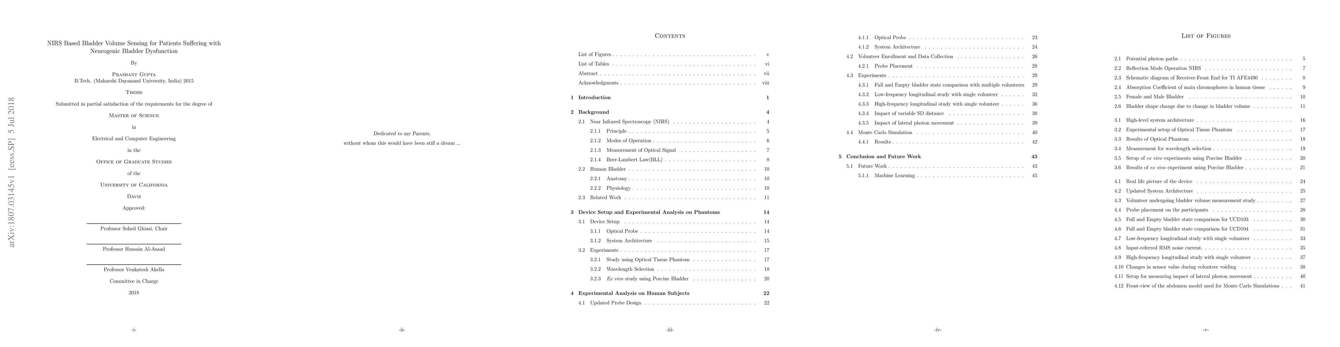Neurogenic Bladder Dysfunction has detrimental effects on day-to-day life of millions of people. Some of the most common symptoms faced by these patients include urinary incontinence, urgency and retention. Since elevated bladder pressure due to prolonged urine storage inside bladder may have adverse impacts on patient's renal health, urologists recommend clean-intermittent catheterization (CIC) every 2 to 4 hours throughout the day to relieve bladder pressure. However, since urine production by kidneys is an intermittent process and most of these patients have limited mobility, such frequent trips to washroom can prove to be challenging. Sometimes, bladder fills to capacity before the recommended CIC time is reached causing embarrassing situation due to leakage. Hence, time-based CIC strategy is difficult to implement and has high chances of failure. As such, continence is the primary concern for most of these patients but sadly there are no practical solutions available in the market that address this concern. A real-time notification system that could give feedback to patients on when "bladder is almost-full" could help these patients to better plan their bathroom trips. This work explores the feasibility of using a near infrared-light based wearable, non-invasive spectroscopy technique that can sense amount of urine present inside the bladder and give details on developing a bladder state estimation device. We present preliminary results by testing our device on optical phantoms and performing ex vivo measurements on porcine bladder and intestines. We later explored the possibility of using the device on human subjects, after study was approved by the UC Davis Institution Review Board (IRB).