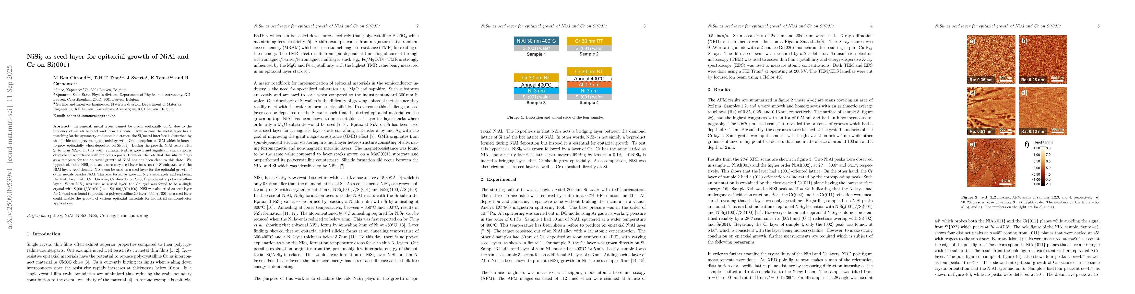 In general, metal layers cannot be grown epitaxially on Si due to the tendency of metals to react and form a silicide. Even in case the metal layer has a matching lattice symmetry and atomic distance, the Si/metal interface is disturbed by the silicide thus preventing epitaxial growth. One exception is NiAl which is known to grow epitaxially when deposited on Si(001). During the growth, NiAl reacts with Si to form NiSi$_2$. In this work, epitaxial NiAl is grown and significant silicidation is observed in accordance with previous reports. However, the role that this silicide plays as a template for the epitaxial growth of NiAl has not been clear to this date. We hypothesize that NiSi$_2$ acts as a necessary seed layer between the Si substrate and the NiAl layer. Additionally, NiSi$_2$ can be used as a seed layer for the epitaxial growth of other metals besides NiAl. This was tested by growing NiSi$_2$ seperately and replacing the NiAl layer with Cr. Growing Cr directly on Si(001) produced a polycrystalline layer. When NiSi$_2$ was used as a seed layer, the Cr layer was found to be a single crystal with Si(001)//Cr(001) and Si(100)//Cr(100). NiSi was also tried as seed layer for Cr and was found to produce a polycrystalline Cr layer. Using NiSi$_2$ as a seed layer could enable the growth of various epitaxial materials for industrial semiconductor applications.
