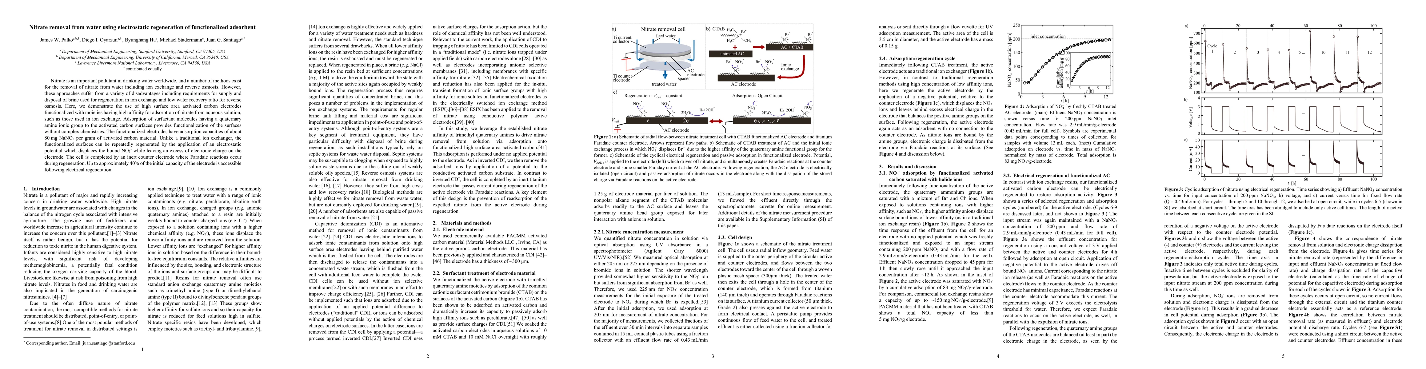 This work presents a unique approach to nitrate removal that combines electrostatic regeneration with functionalized adsorbents, offering a promising solution for efficient and sustainable water treatment.