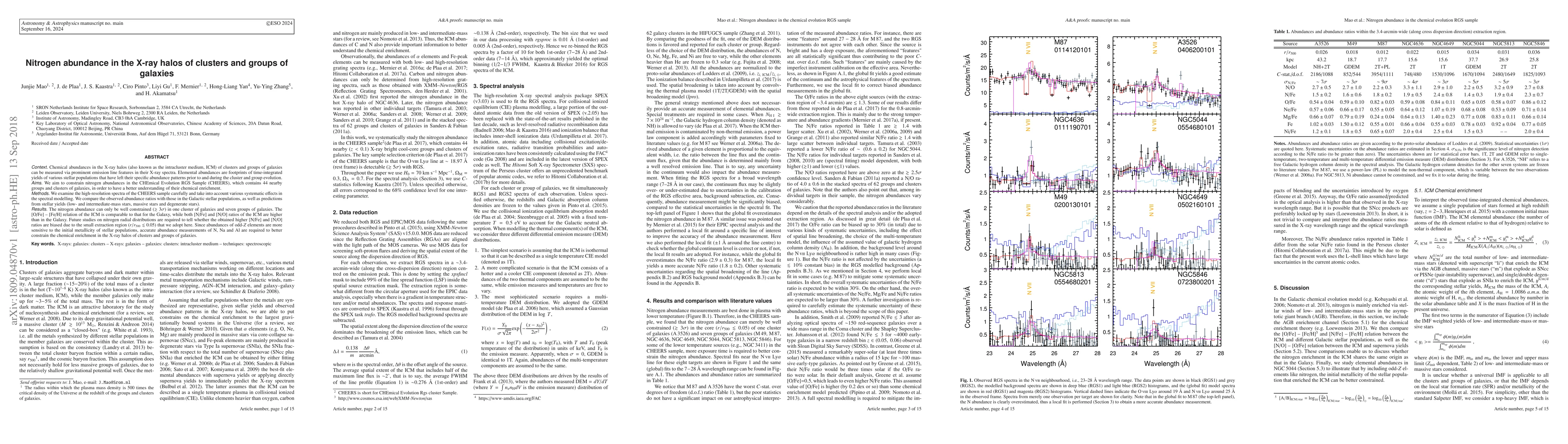 Researchers measured nitrogen abundance in X-ray halos of galaxy clusters and groups, finding higher [N/Fe] and [N/O] ratios compared to the Galaxy, with constraints only possible for a few systems.