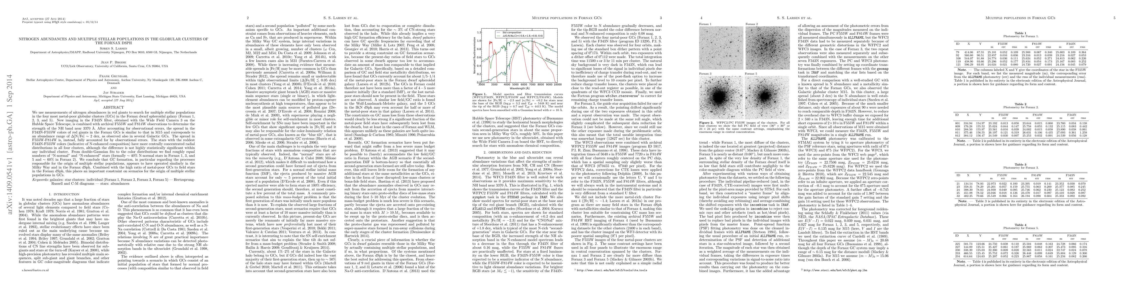 This study investigates nitrogen abundances in red giants of four metal-poor globular clusters in the Fornax dwarf galaxy, revealing multiple stellar populations with a significant spread in nitrogen-to-iron ratio. The findings suggest similar processes for the formation of multiple stellar populations in both Fornax and the Milky Way.